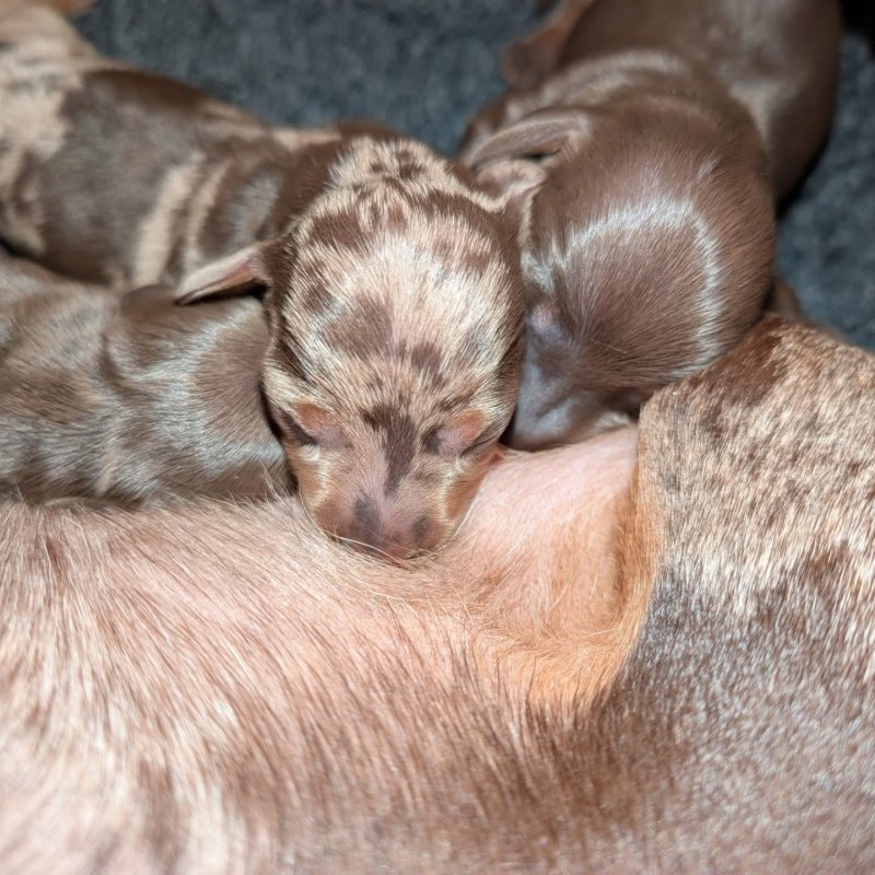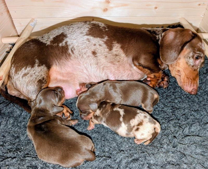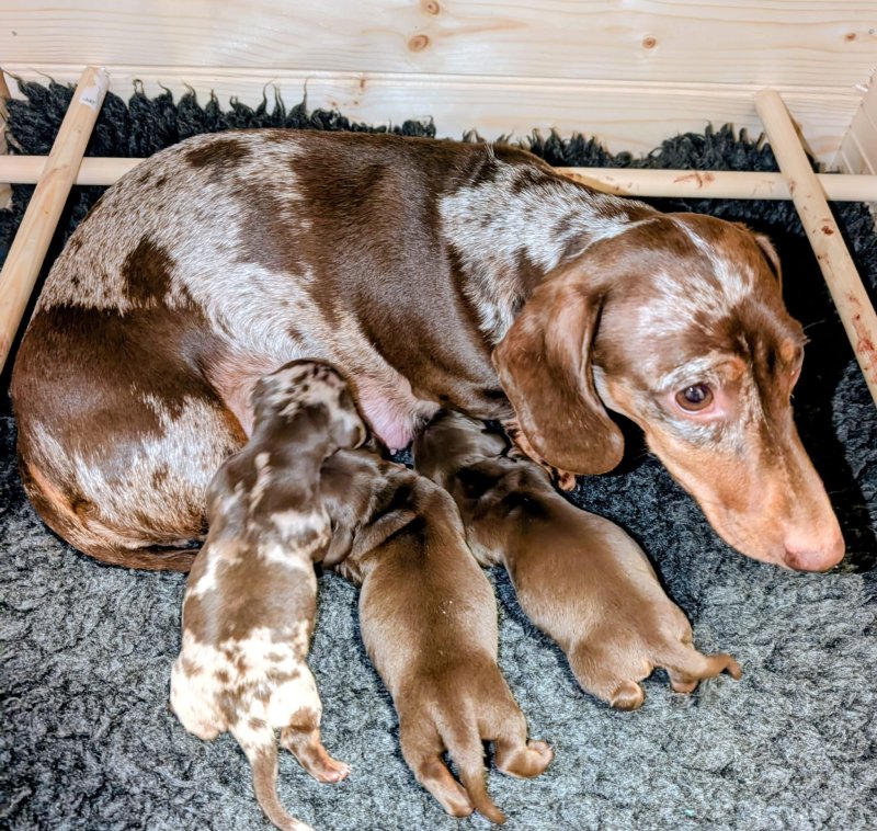 We are delighted to announce the arrival of our beautiful litter of well-bred KC registered miniature Dachshund puppies, now looking for their future forever homes.