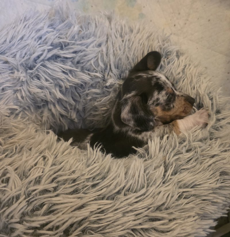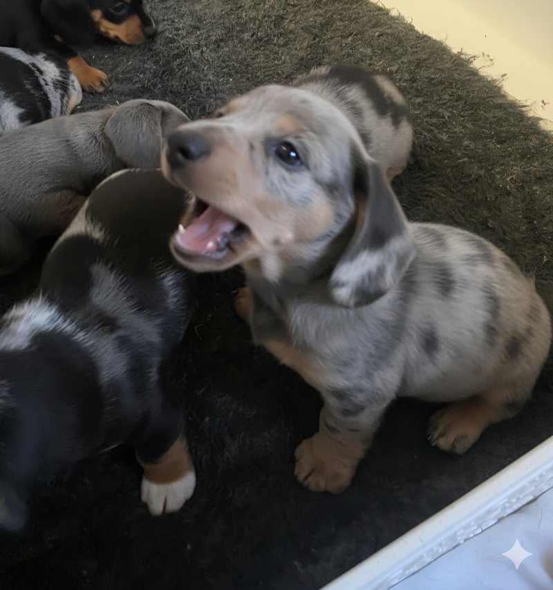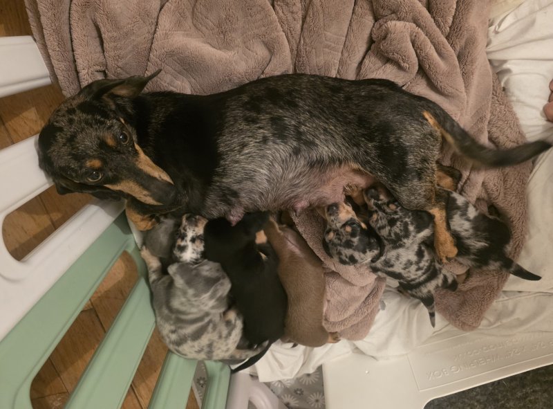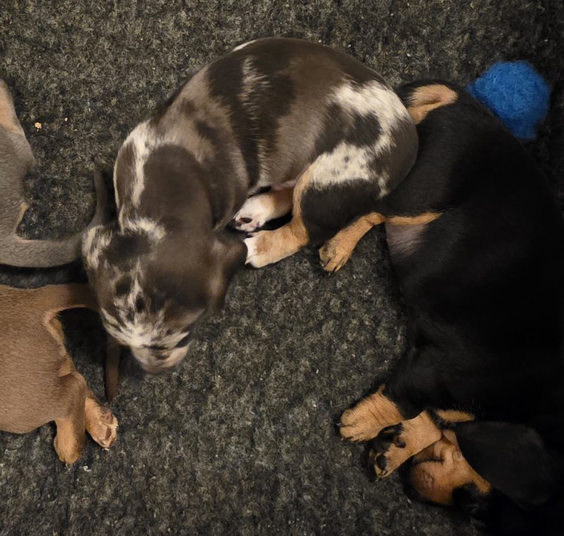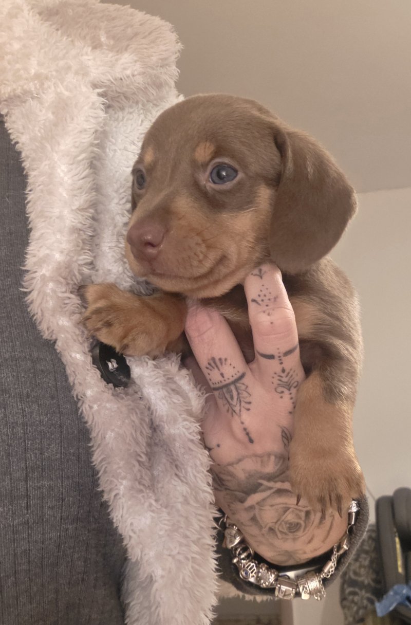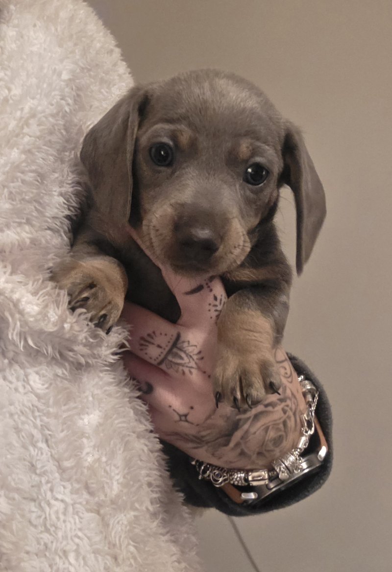 Dad, Pablo, is a stunning kc registered blue & tan miniture dachshund. He's also has a kind and loving nature as well as being fully health tested and has champion blood lines.