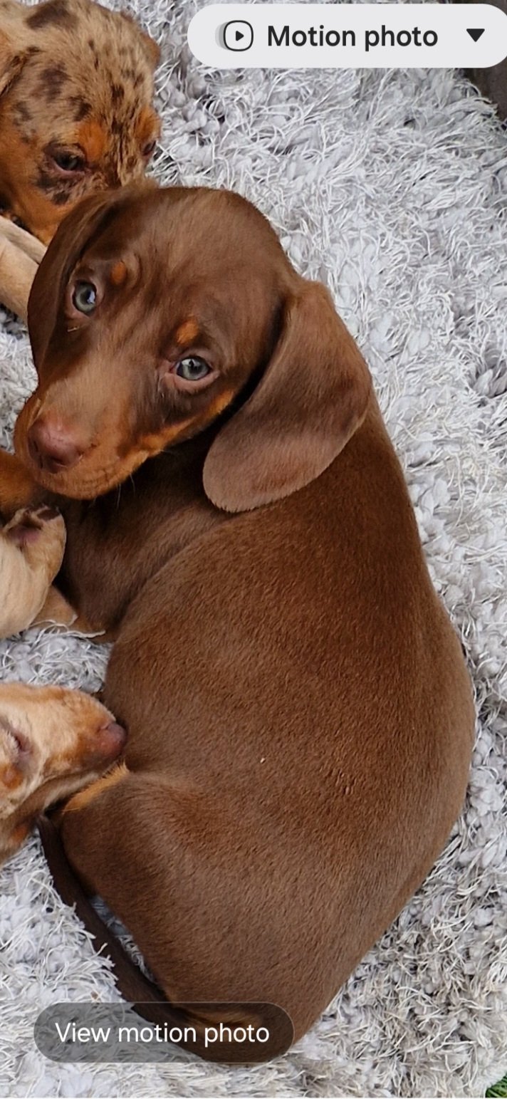 Hi i have 6 miniature dachshund puppies looking for there forever homes there are 5girls and 1 boy they are all ready to leave on the 15th of July before leaving they will have first injections done microchip fitted and be flead and wormed. Both parents can be seen all viewings welcome please contact me for more information.
