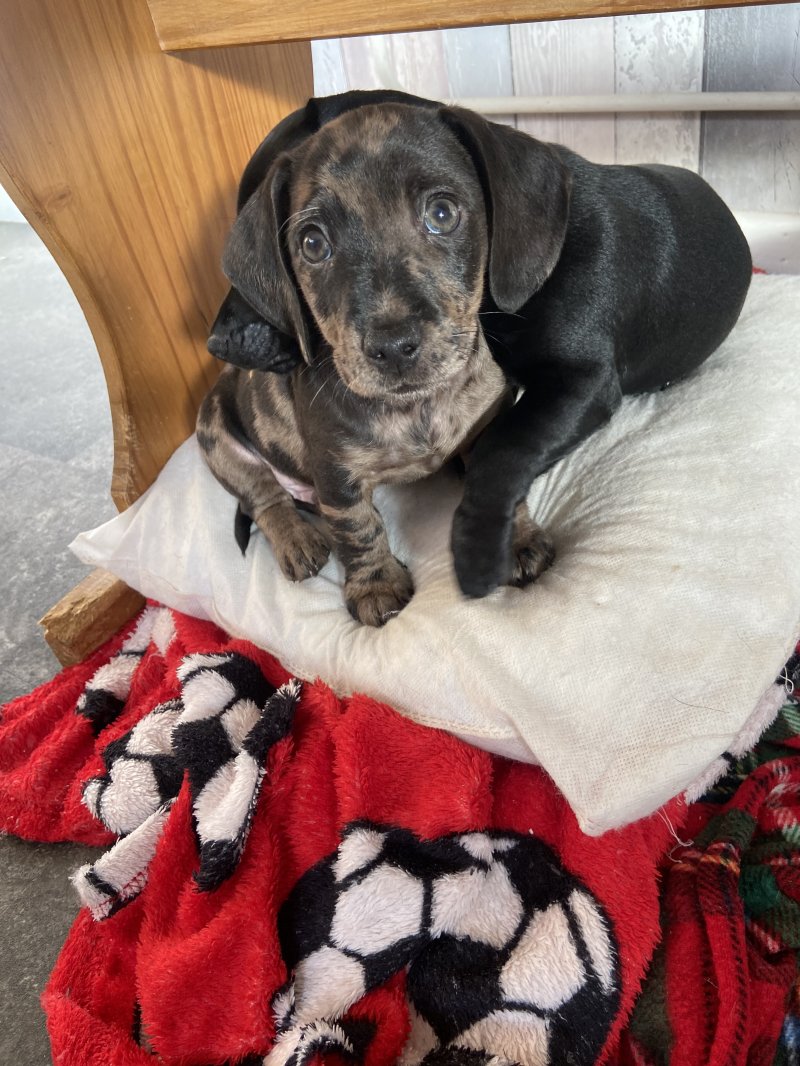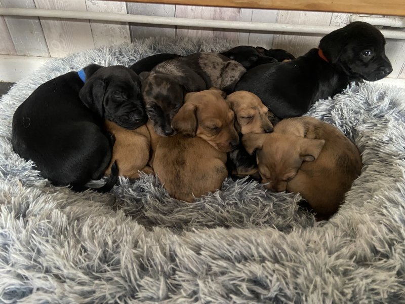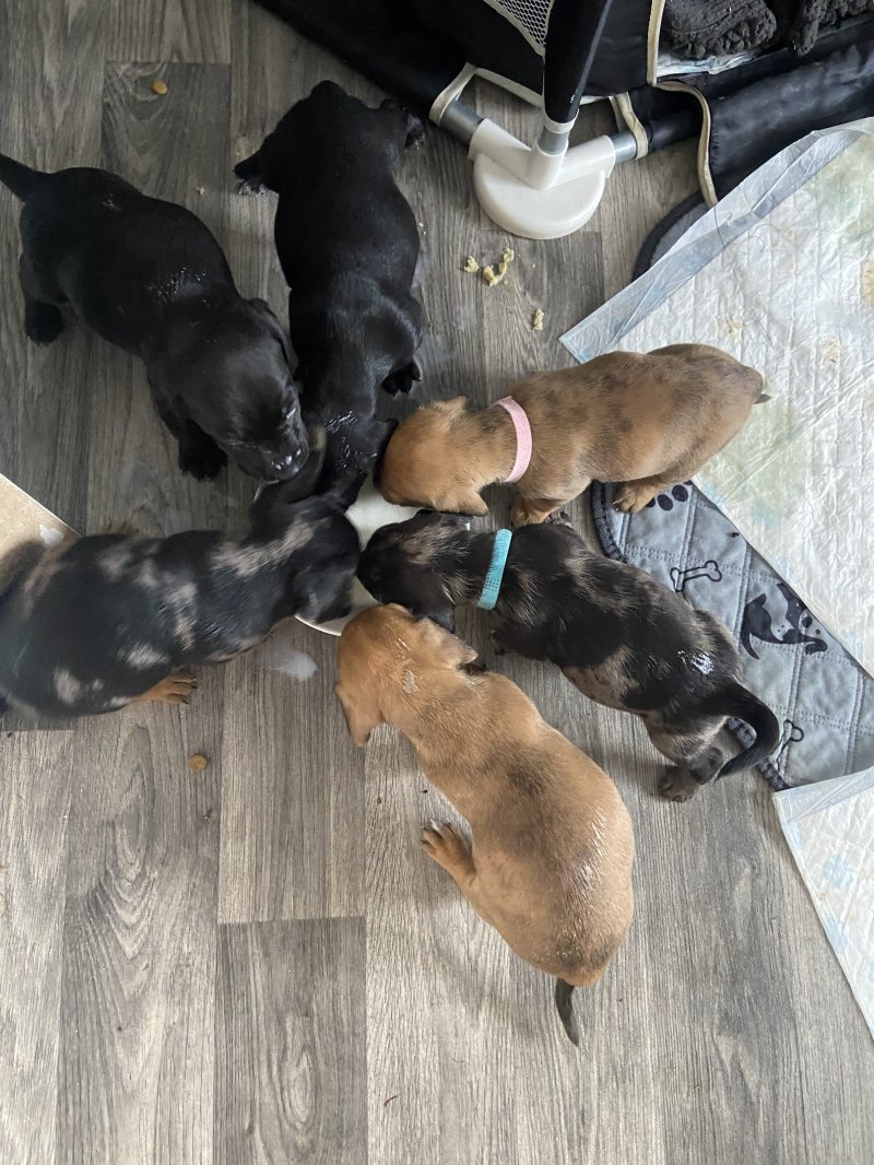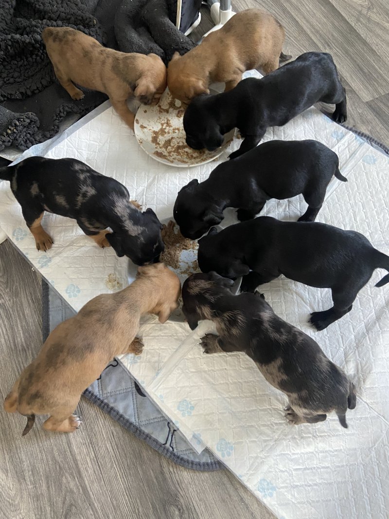 My beautiful black patterdale has has 8 beautiful pups 6 boys and two girls dad is doxi dachshund with beautiful markings