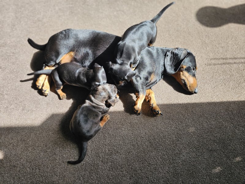 We are delighted to introduce our very first litter of beautiful Standard Dachshund puppies 🐾. Mum is our much-loved family pet and has the sweetest temperament – she can be seen with her puppies in our home.