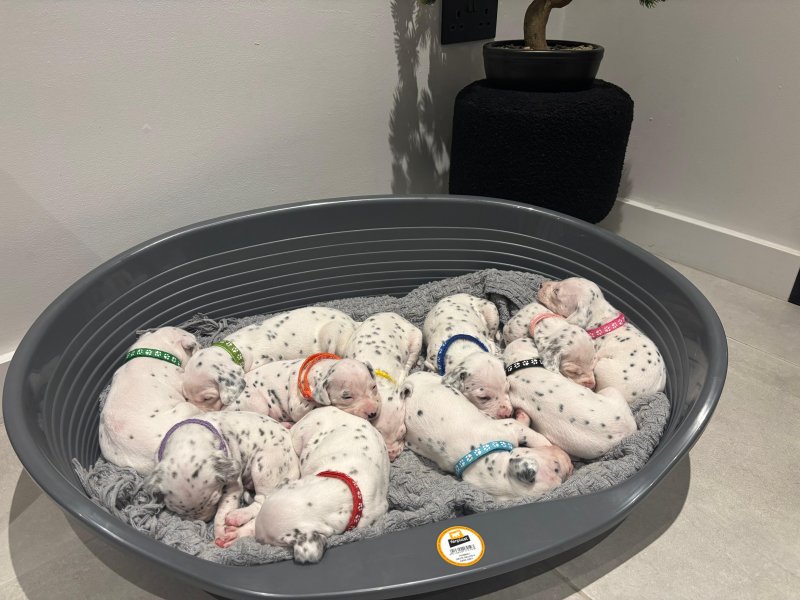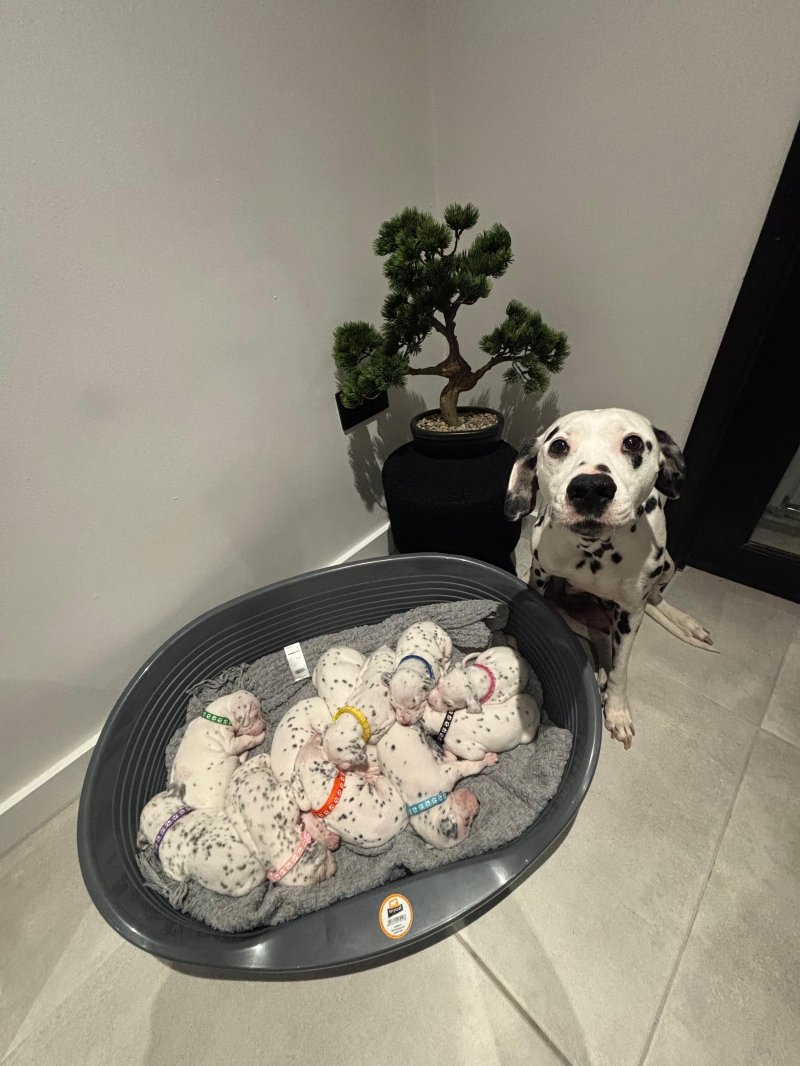 We’re thrilled to announce that Tally and Connor have welcomed their second stunning litter — a lively and healthy group of 11 gorgeous Dalmatian puppies