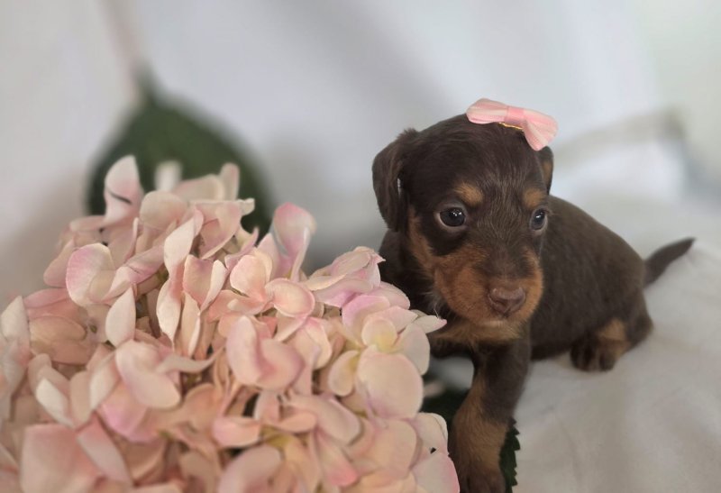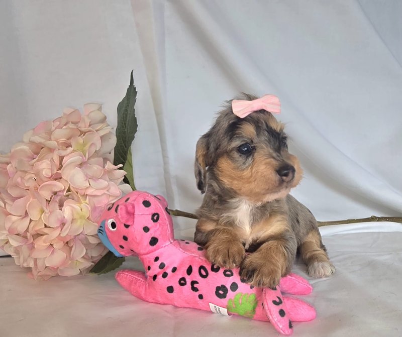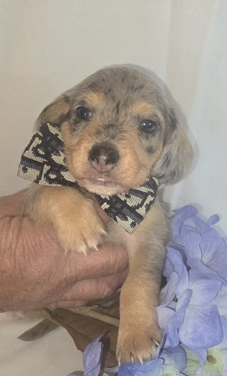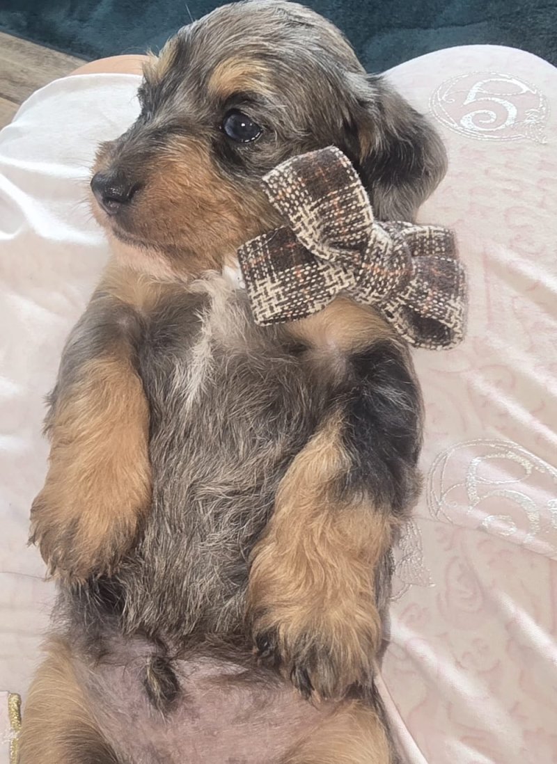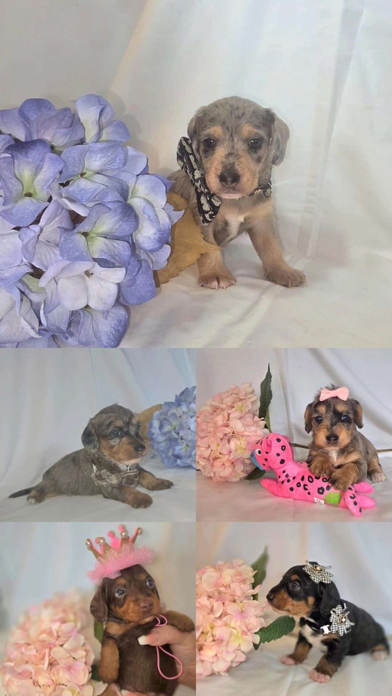 We are happy to introduce our new little beauty's to the world, our lovely girl has given birth to the cutest little puppys I have seen, mum is a silver dapple miniature dachshund, she has a lovely nature and is very friendly around kids and adults she is a family pet who is very much loved and it is amazing going through this experience with her, she is doing amazing with the pups and is really takeing care of them so well, dad is a proven stud and is a red toy poodle he is from a reliable stud and is also from a very loving home, both parents are PRA clear, the puppies are doing amazing they are currently doing weaning and toilet training and are really starting to show there fun personalities they are super cute ( we had so much fun doing their little photo shoot) and being well played with so they are used to being around adults, children and other pets, this is our first litter of doxiepoo and they really are stunning, all puppies will come with a puppy pack that will include a new blanket that will have mum and siblings scent on, they will be wormed and microchiped, we can do vaccinations upon request but it will be an additional £50 but we would suggest looking in to doing your own first as all vaccinations are included in pet plans so it dose work out cheaper to do them with your chosen vet, viewing is very much encouraged and welcomed all puppys will require a £200 deposit to be secured and the remaining balance will not need to be paid untill you collect your new family member