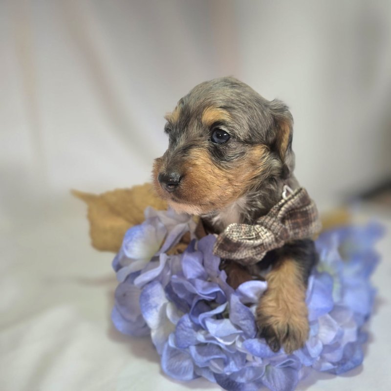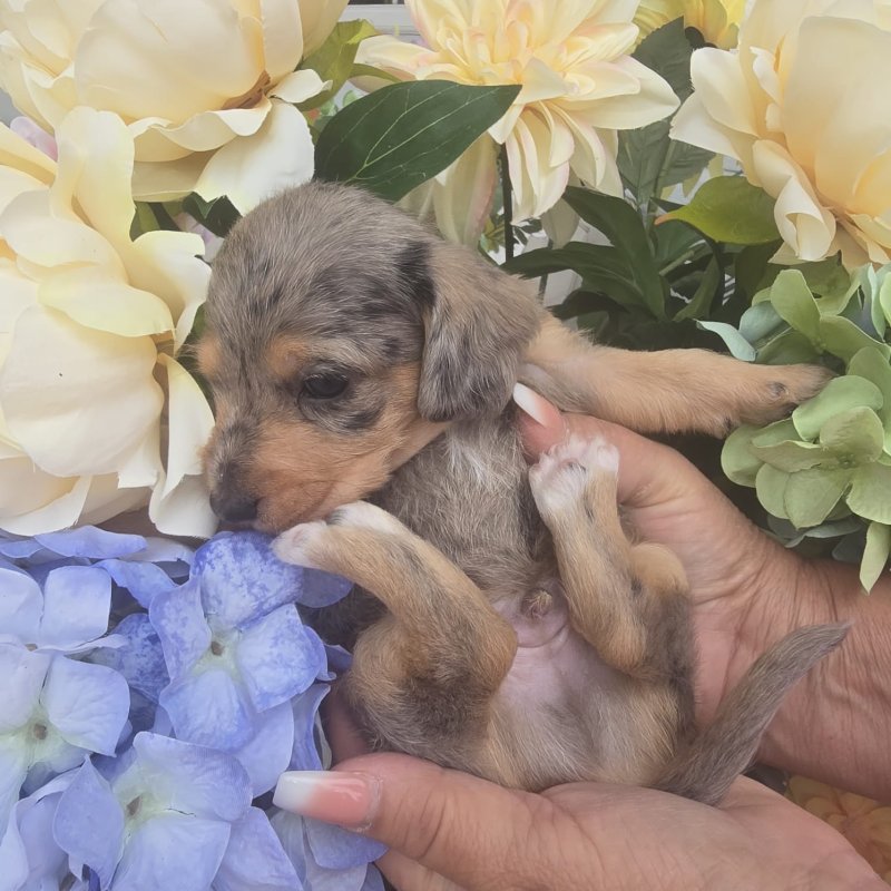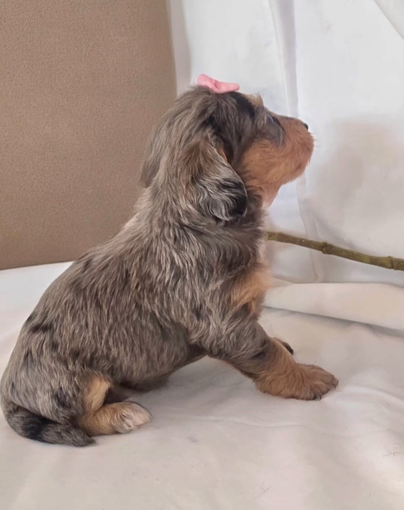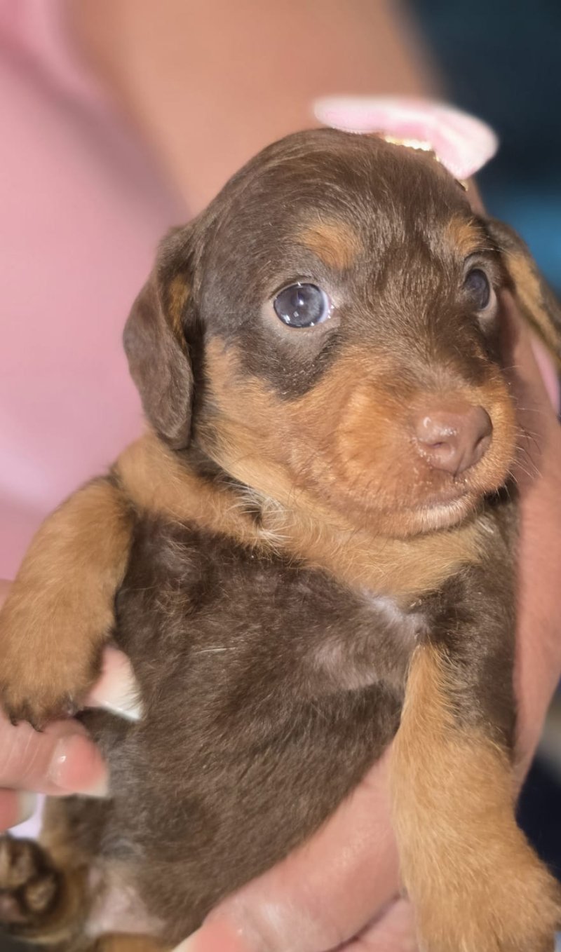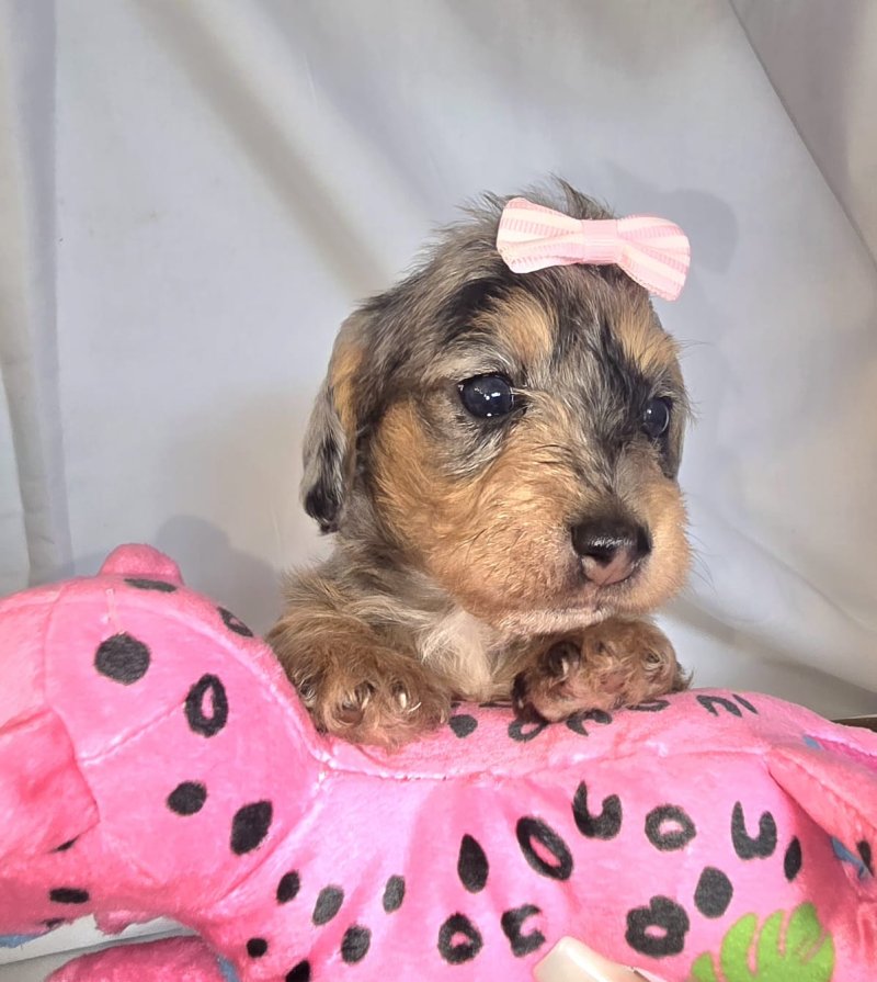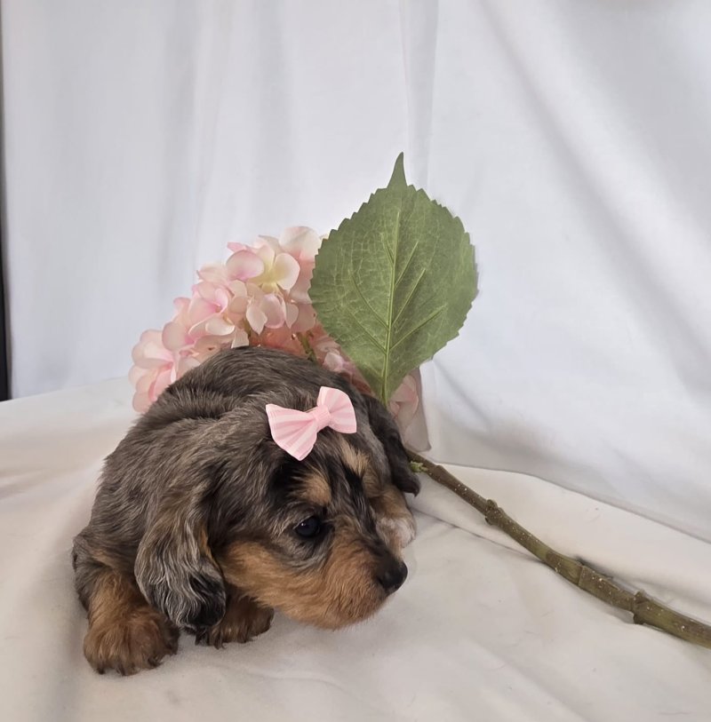 We are happy to introduce our new little beauty's to the world, our lovely girl has given birth to the cutest little puppys I have seen, mum is a silver dapple miniature dachshund, she has a lovely nature and is very friendly around kids and adults she is a family pet who is very much loved and it is amazing going through this experience with her, she is doing amazing with the pups and is really takeing care of them so well, dad is a proven stud and is a red toy poodle he is from a reliable stud and is also from a very loving home, both parents are PRA clear, the puppies are doing amazing they are currently doing weaning and toilet training and are really starting to show there fun personalities they are super cute ( we had so much fun doing their little photo shoot) and being well played with so they are used to being around adults, children and other pets, this is our first litter of doxiepoo and they really are stunning, all puppies will come with a puppy pack that will include a new blanket that will have mum and siblings scent on, they will be wormed and microchiped, we can do vaccinations upon request but it will be an additional £50 but we would suggest looking in to doing your own first as all vaccinations are included in pet plans so it dose work out cheaper to do them with your chosen vet, viewing is very much encouraged and welcomed all puppys will require a £200 deposit to be secured and the remaining balance will not need to be paid untill you collect your new family member