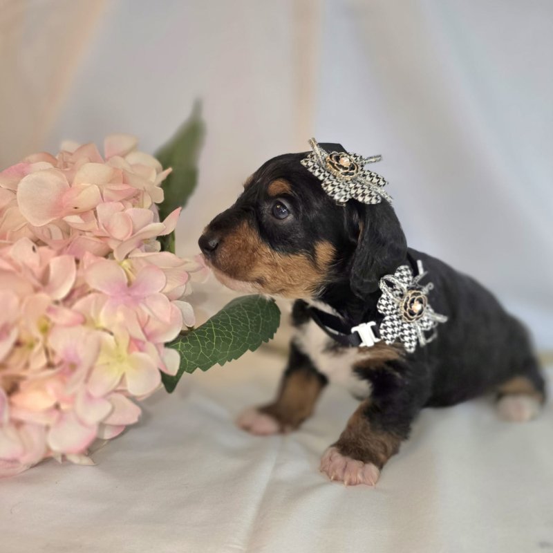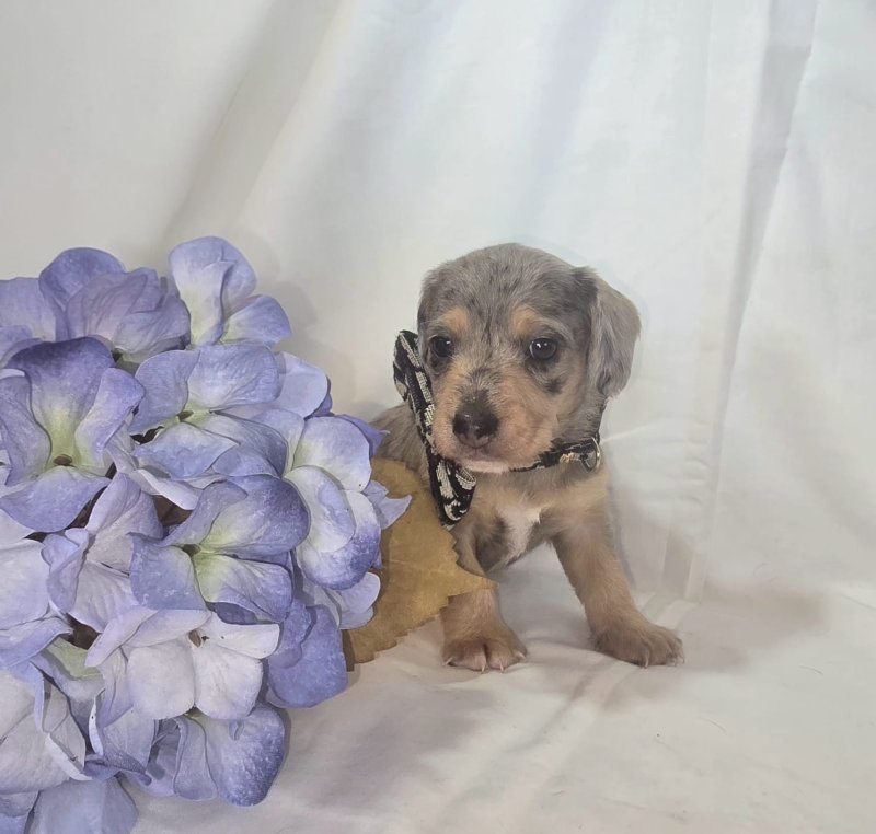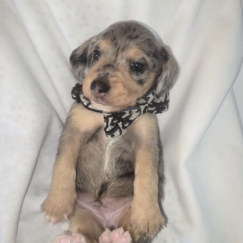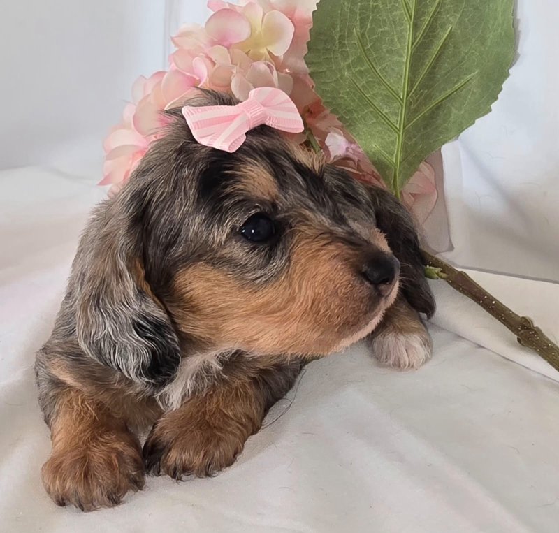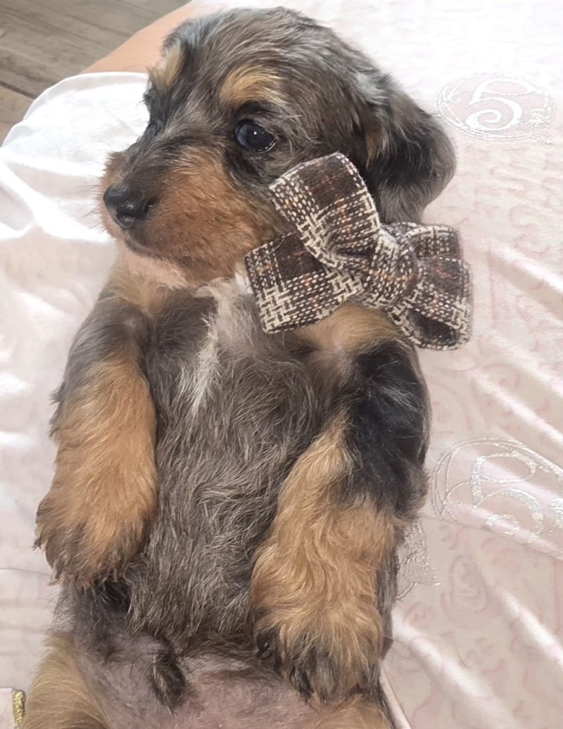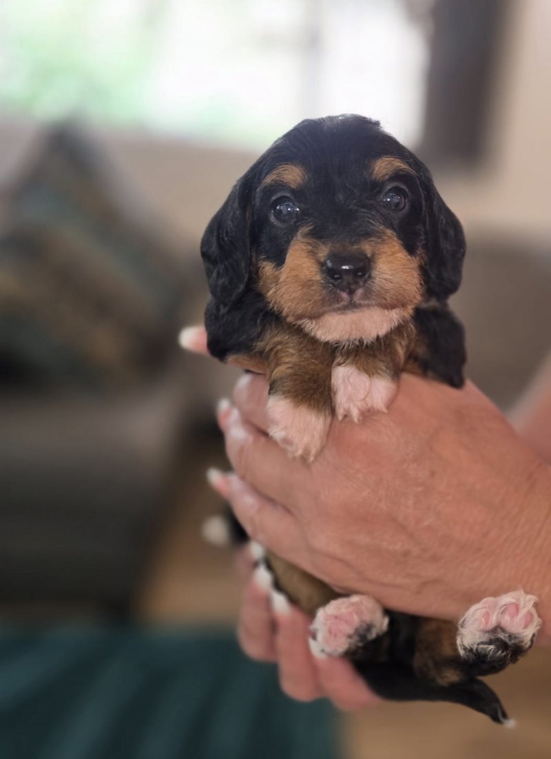 We are happy to introduce our new little beauty's to the world, our lovely girl has given birth to the cutest little puppys I have seen, mum is a silver dapple miniature dachshund, she has a lovely nature and is very friendly around kids and adults she is a family pet who is very much loved and it is amazing going through this experience with her, she is doing amazing with the pups and is really takeing care of them so well, dad is a proven stud and is a red toy poodle he is from a reliable stud and is also from a very loving home, both parents are PRA clear, the puppies are doing amazing they are currently doing weaning and toilet training and are really starting to show there fun personalities they are super cute ( we had so much fun doing their little photo shoot) and being well played with so they are used to being around adults, children and other pets, this is our first litter of doxiepoo and they really are stunning, all puppies will come with a puppy pack that will include a new blanket that will have mum and siblings scent on, they will be wormed and microchiped, we can do vaccinations upon request but it will be an additional £50 but we would suggest looking in to doing your own first as all vaccinations are included in pet plans so it dose work out cheaper to do them with your chosen vet, viewing is very much encouraged and welcomed all puppys will require a £200 deposit to be secured and the remaining balance will not need to be paid untill you collect your new family member