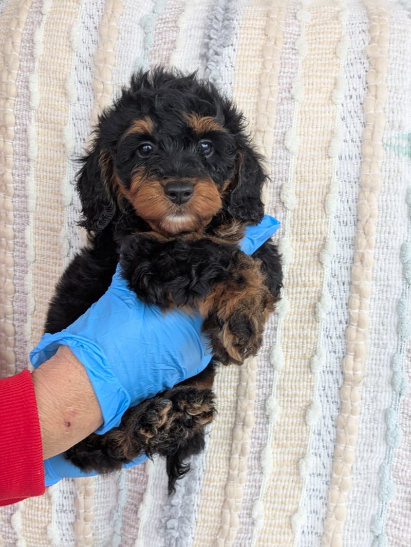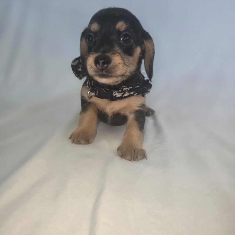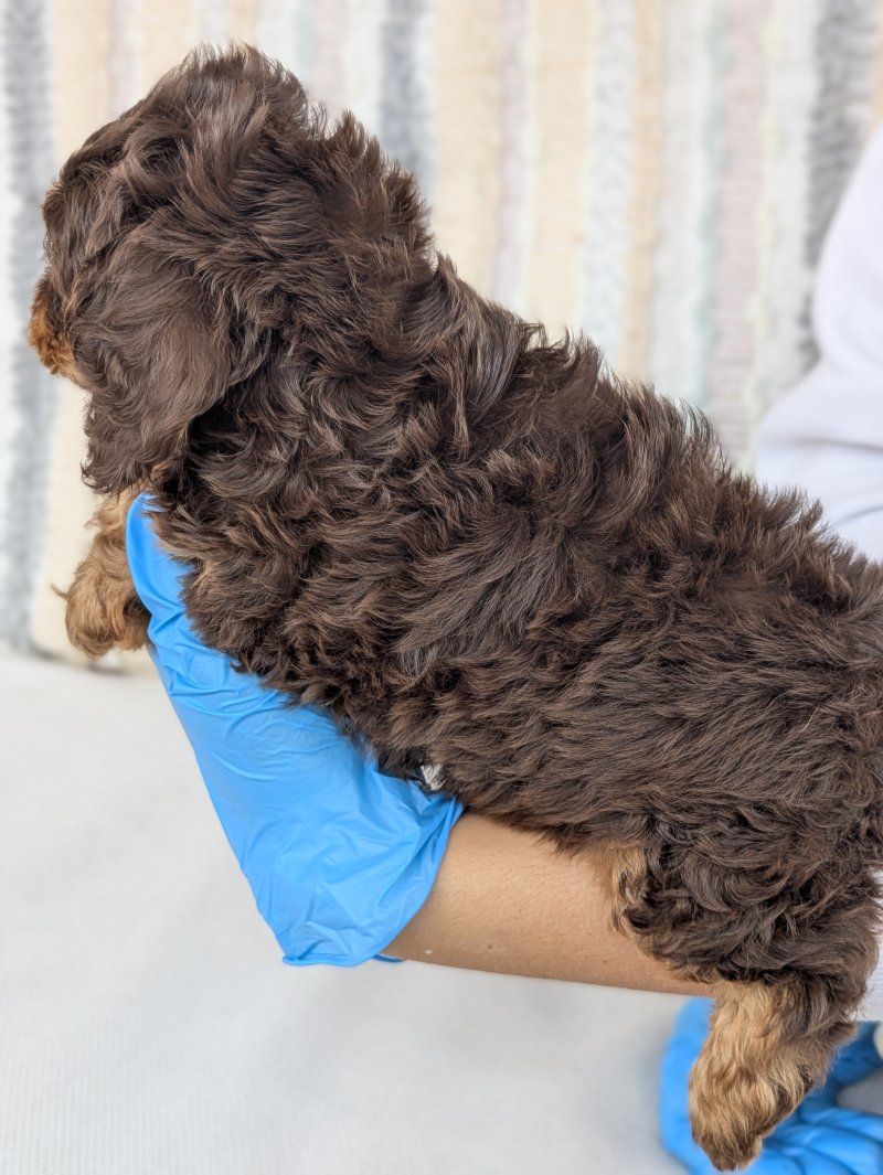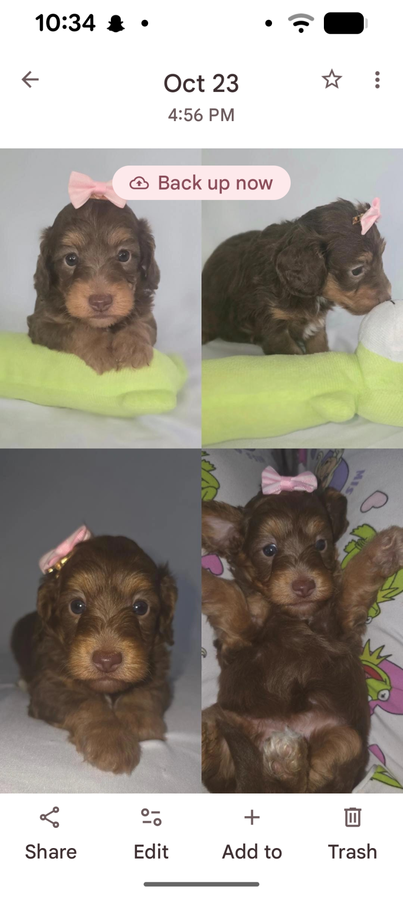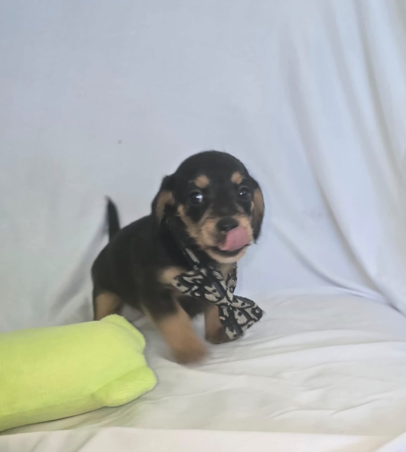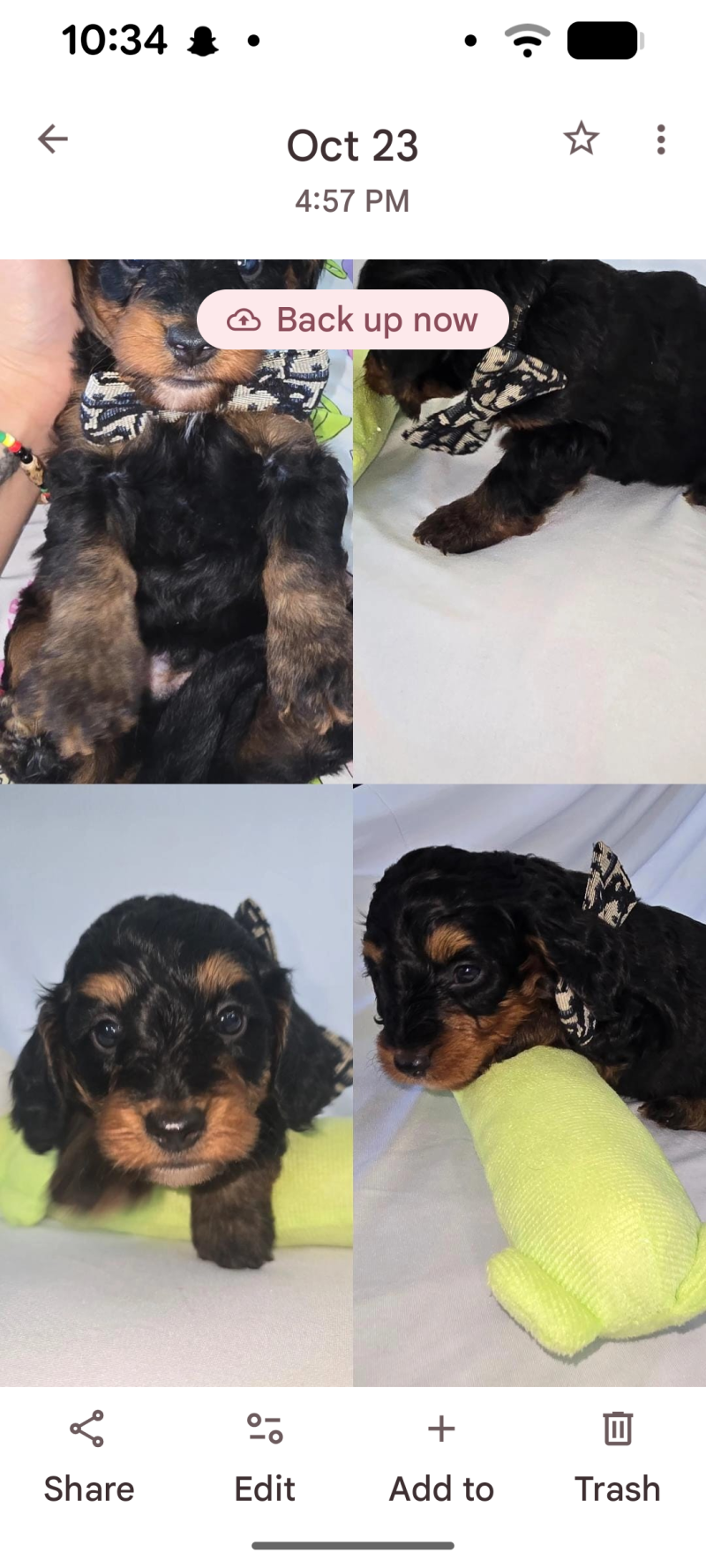 I would like to introduce our beautiful new litter of 6 doxiepoo puppies, mum is a silver dapple mini smooth dachshund , she is 2 years old and a family pet who o bred myself, dad is a carefully chosen red toy poodle stud, from a family home.