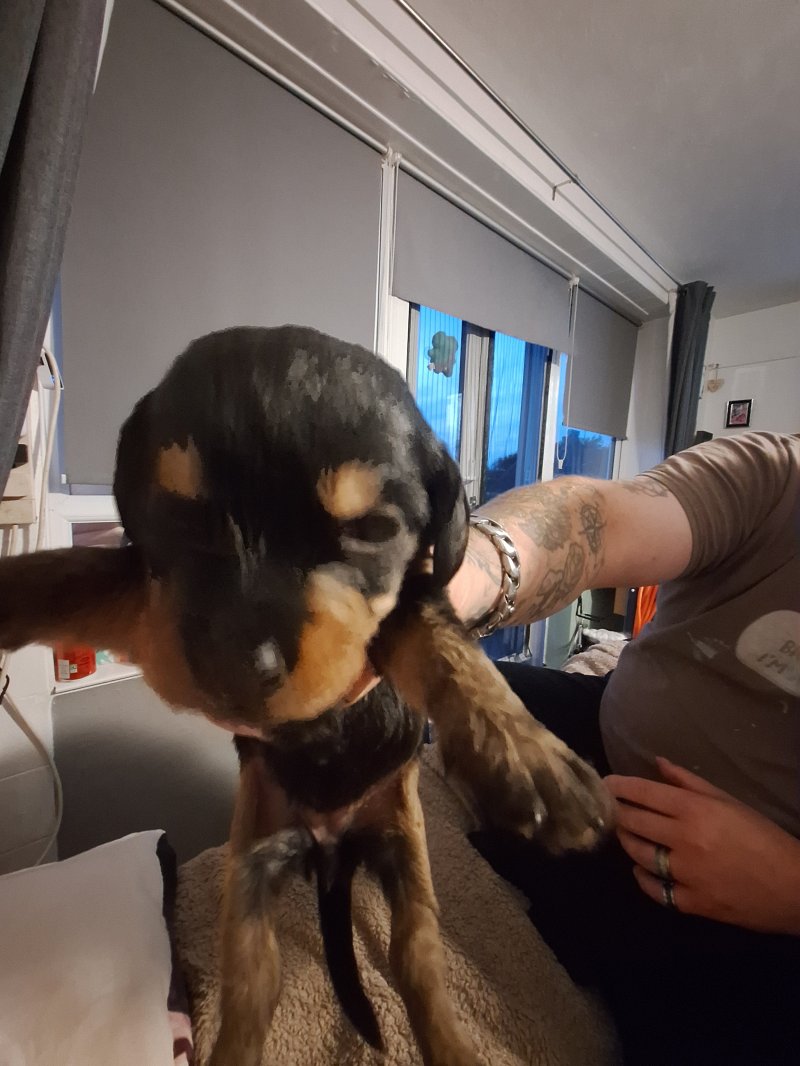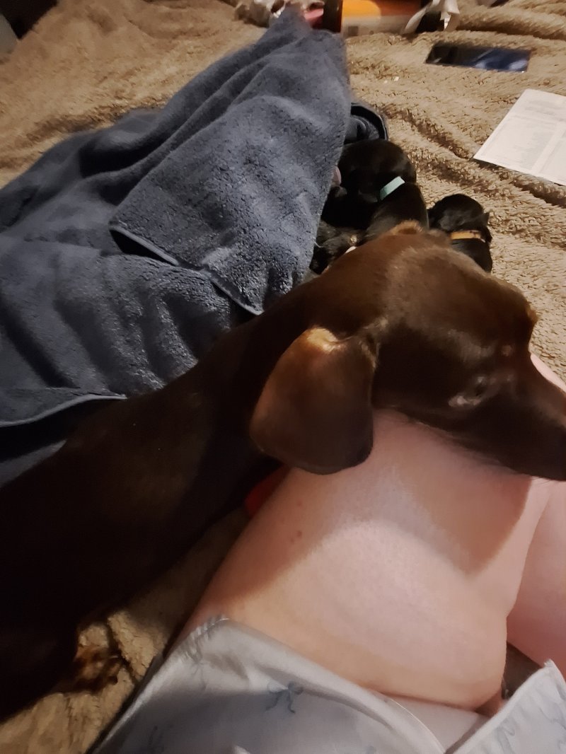 My beautiful daucshaund has had a lovely litter of 4 daxiepoos dad is a cockapoo 3 pure blacks and 1 black and tan i have 1 black boy the rest are girls both family pets and can been seen