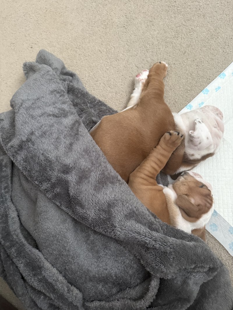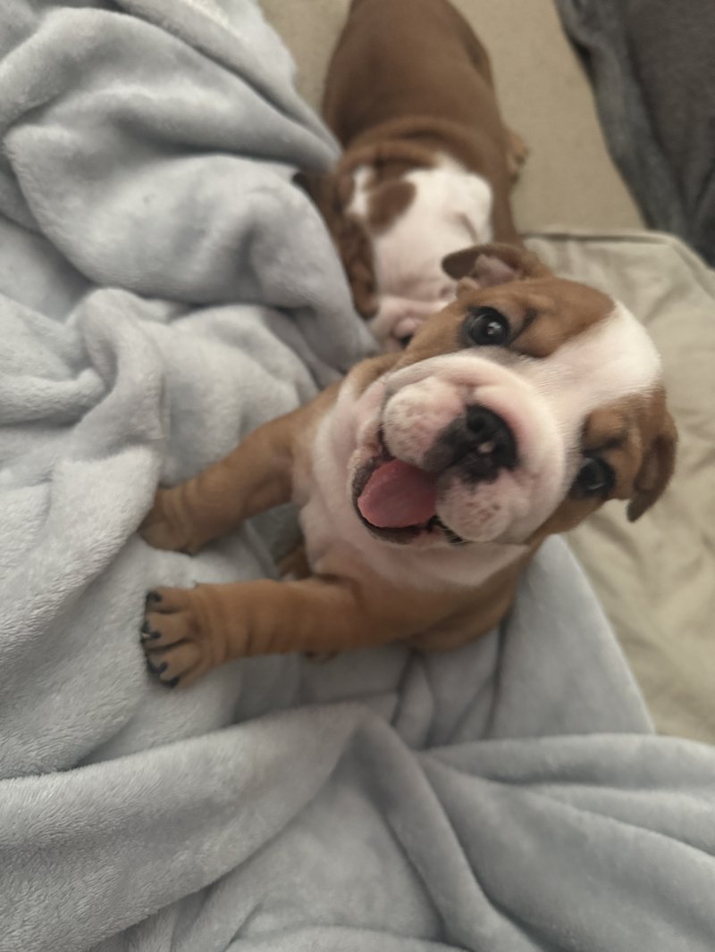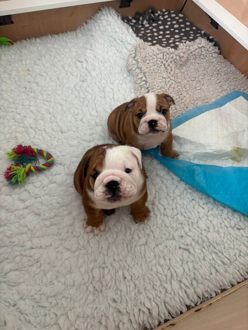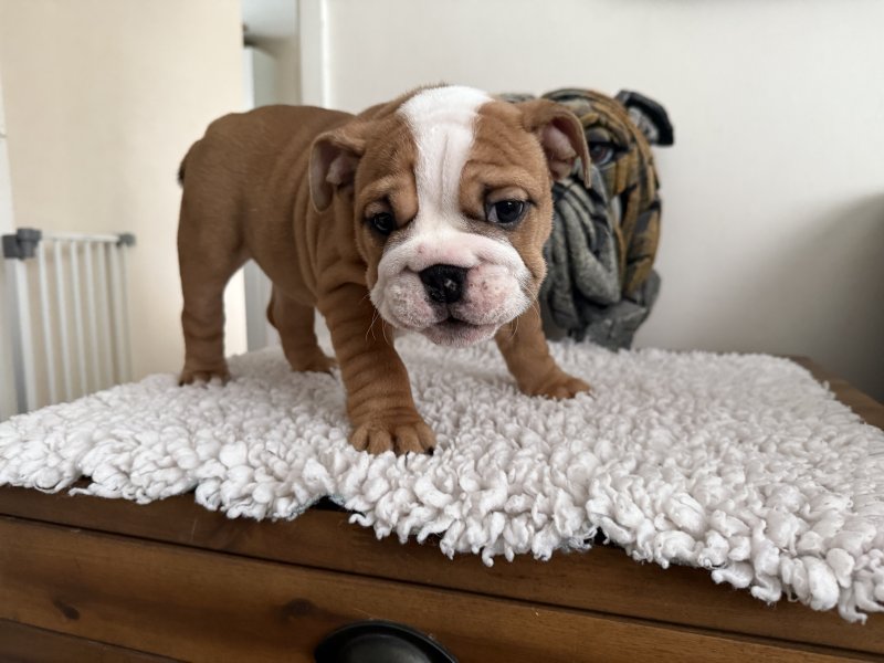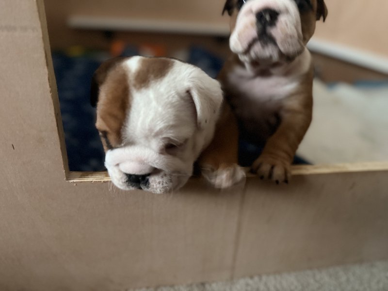We have 2 x 8 week old red and white English Bulldogs puppies. They have had their 1st lot of vaccinations and are microchipped. Mum is Silver Health tested as is Dad. Both parents are HUU clear.