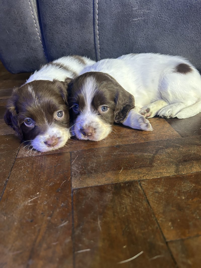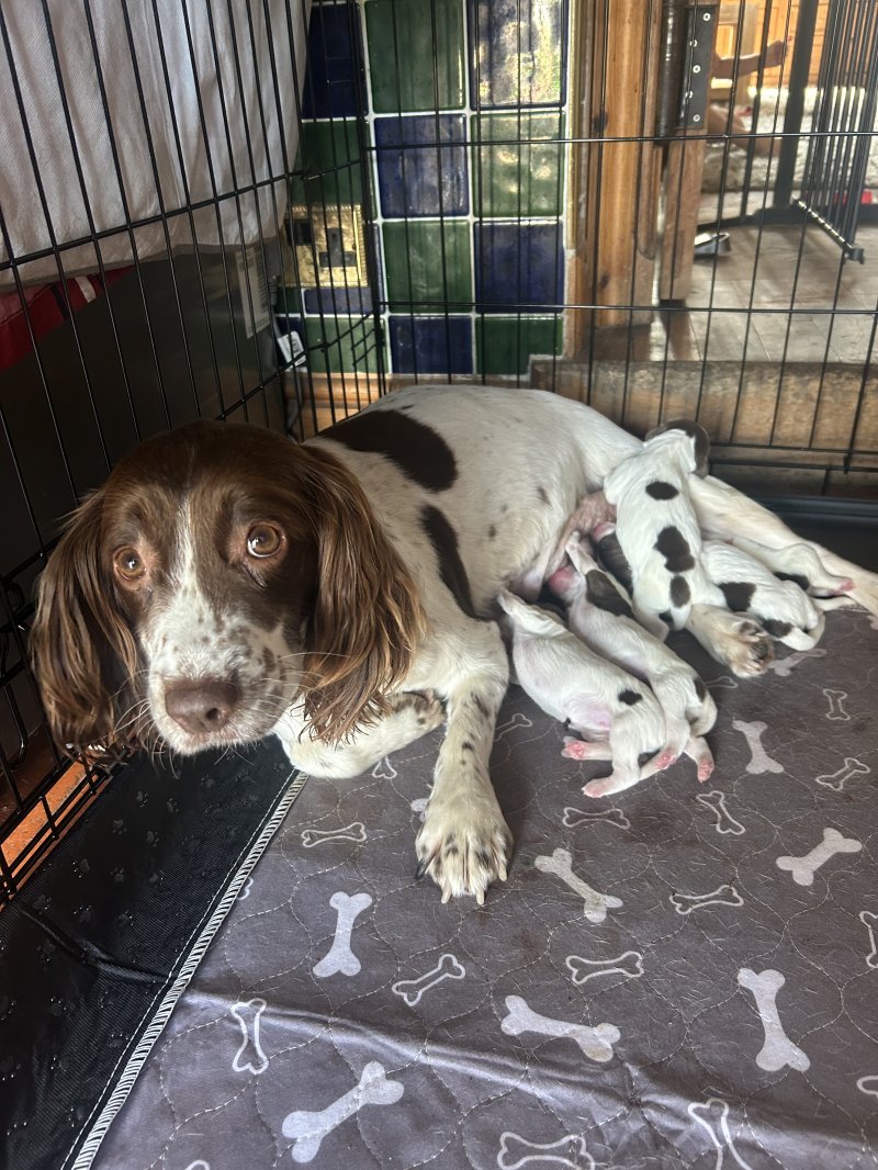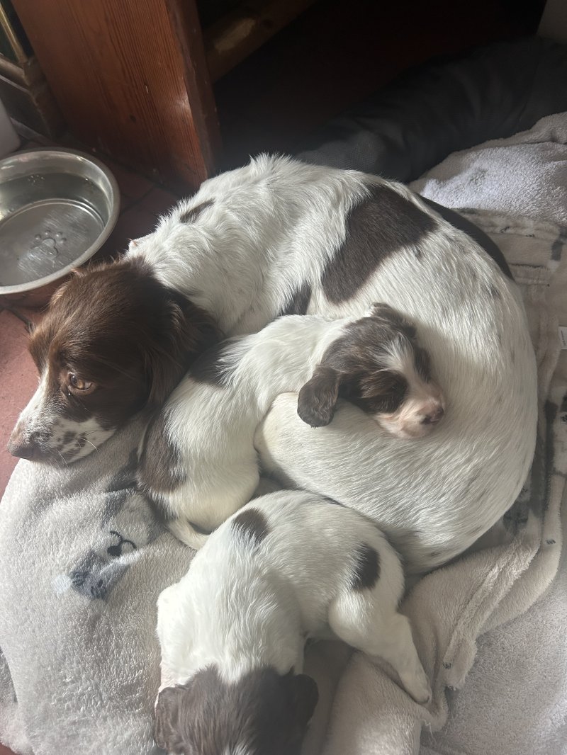 I have a litter of beautiful English springer spaniel puppies for sale 3 bitches 1 dog. Both mum and dad can be seen at home. Mum and dad both have a lot of world champion field trials on their bloodline making them excellent trainable dogs. Puppies would make excellent working dogs or stay at home pets. All puppies worked microchipped and 1st vaccinations.