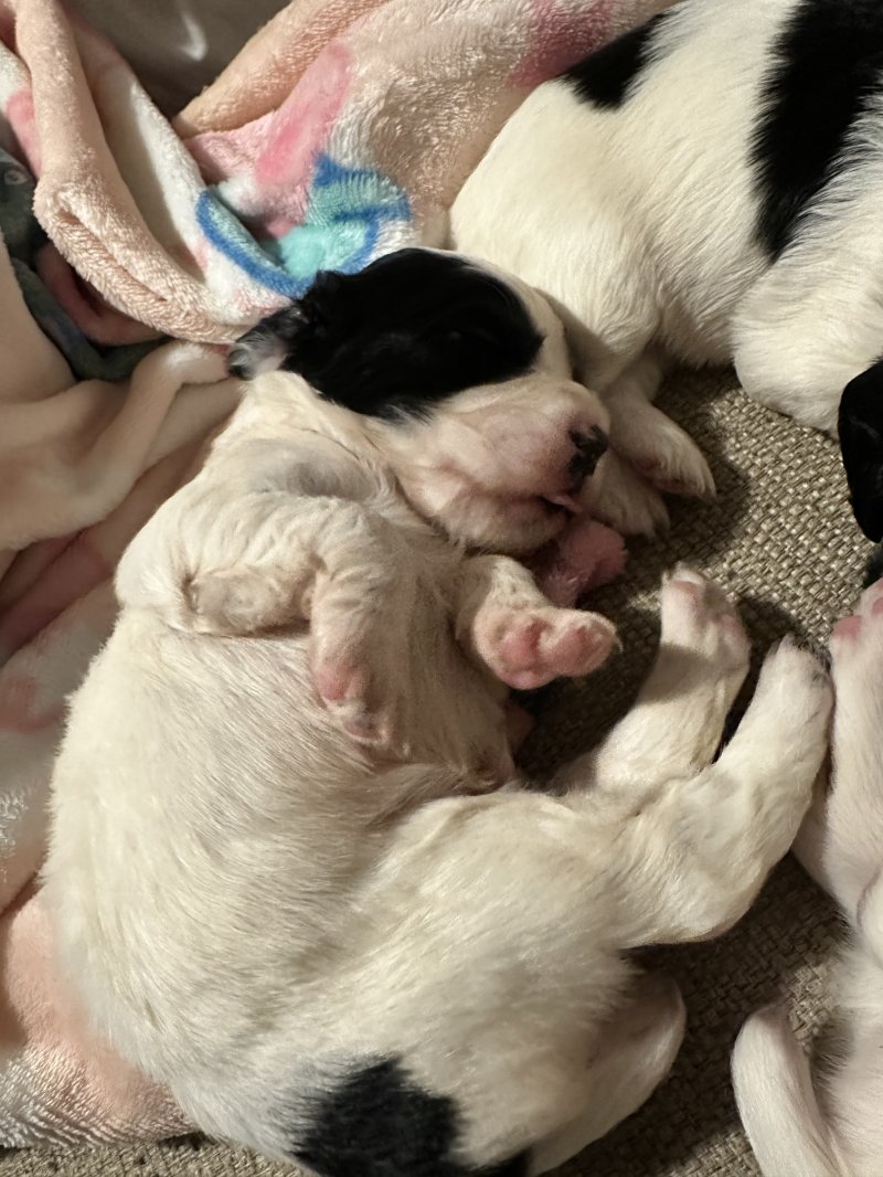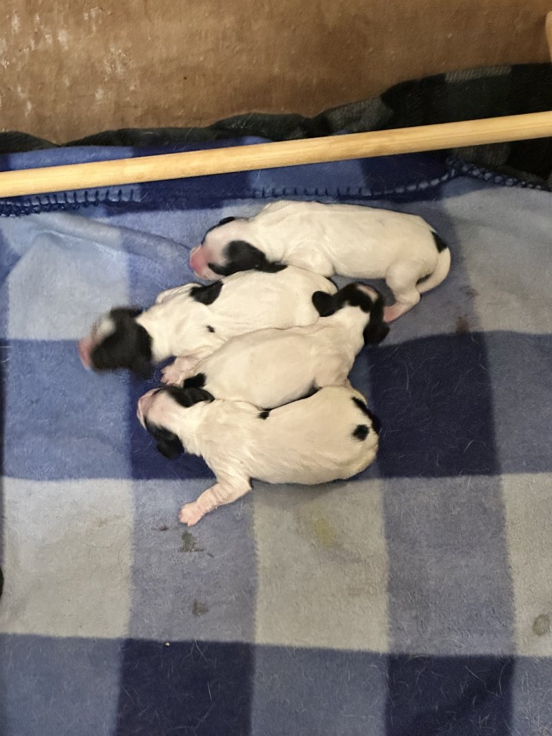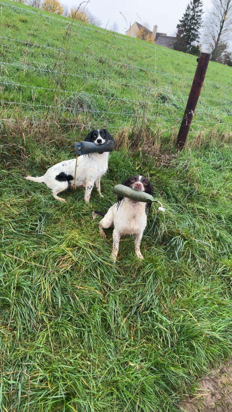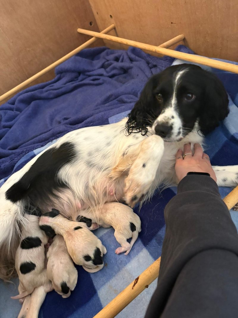 Here I have 2 kc springer spaniel boys left docked chipped and first set of jabs before they leave both parents can be seen both parents a strong fast working dogs