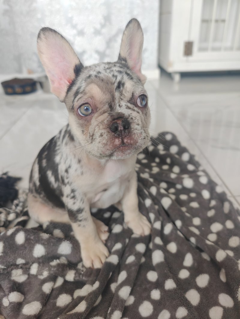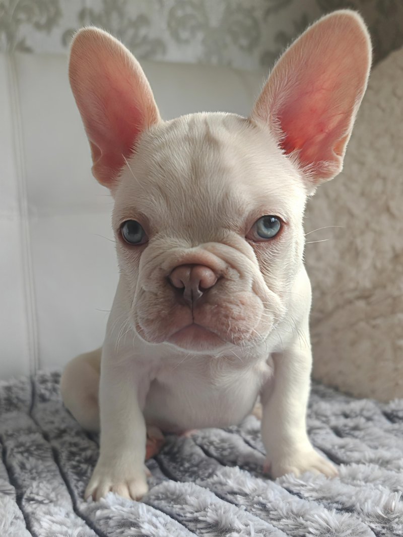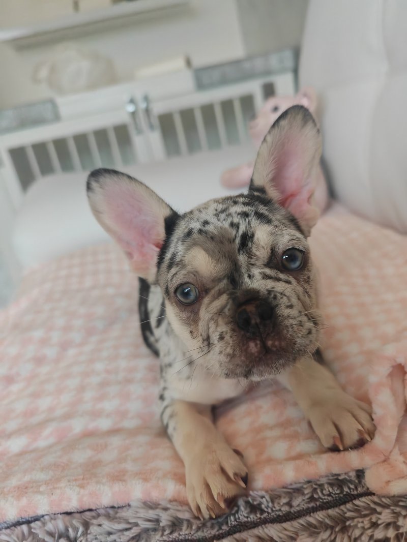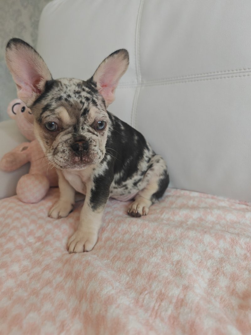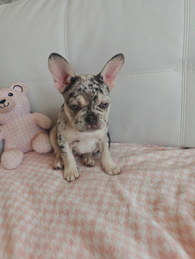 Here I have for sale the last 2 pups in my beautiful first litter of french bulldogs. These pups are absolutely gorgeous and have a great combination of colouring , with pixie and Orion being chocolate and lilac merle colouration with platinum and fawn shades and fawn socks, and moonshine being completely platinum. All dogs are KC registered, microchipped wormed flead and first vaccinations completed. They have been raised in a loving home with mum , and our other 10 month old male Frenchie . Mum was AI at the very best elite kennels , using a beautiful black and tan full fluffy stud. They are all on grain free kibble and are happily on their training of using puppy pads. We are looking for forever homes for our stunning little babies and hoping to find someone who can love them just as much as we do.