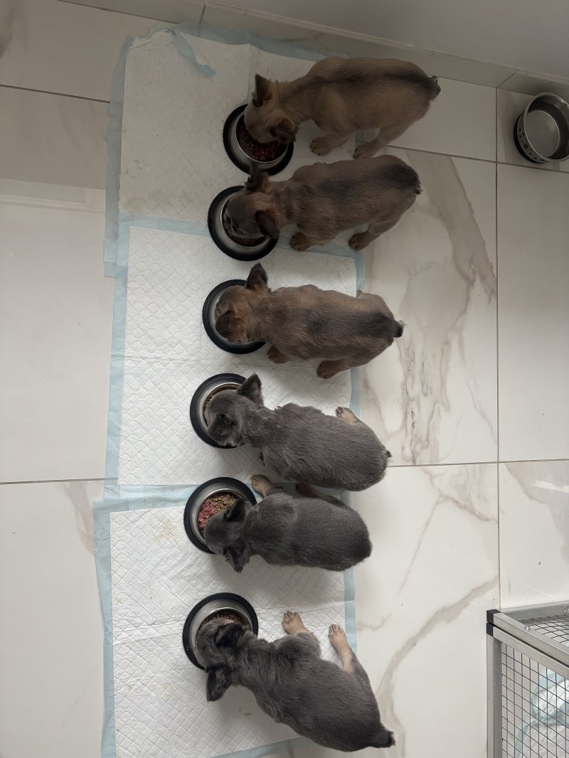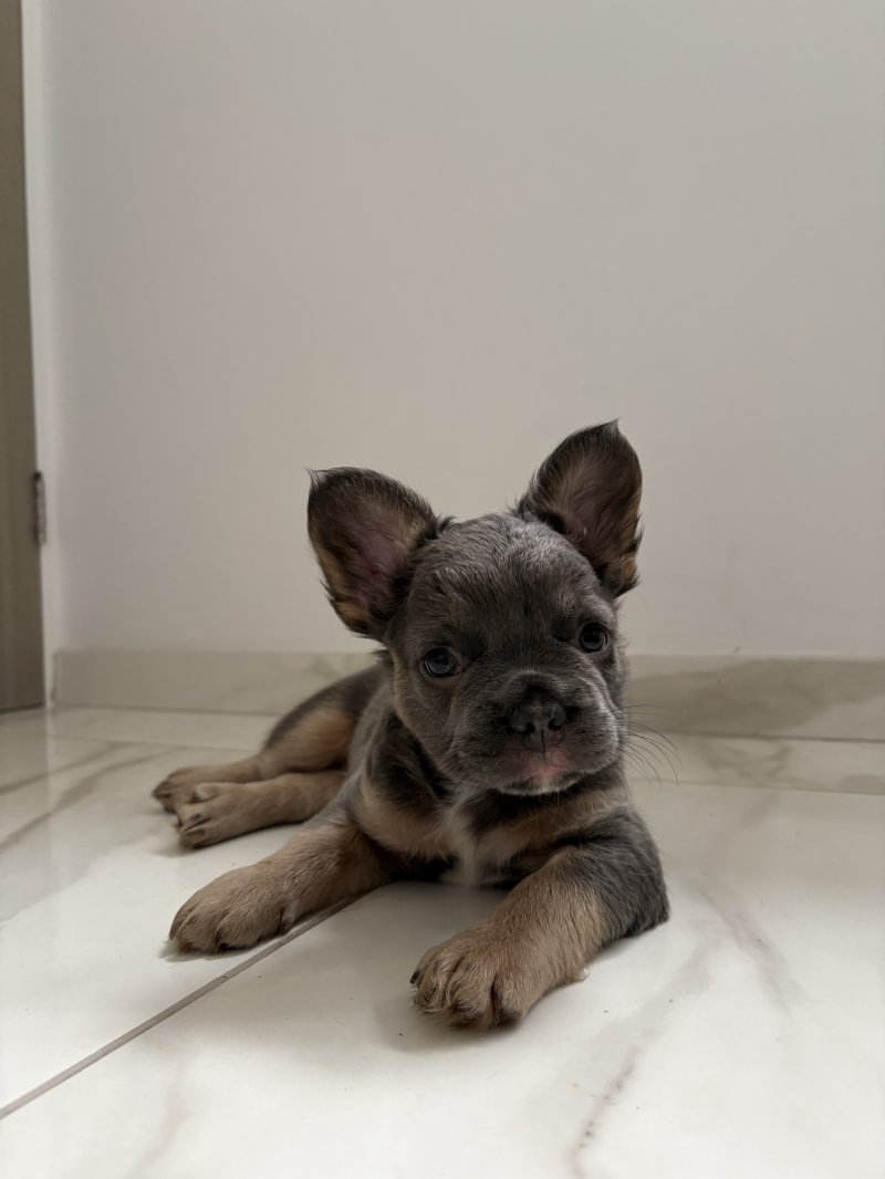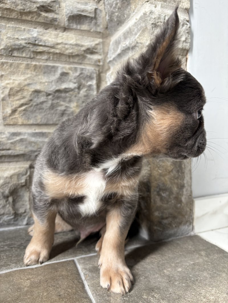 Dad is a Fluffy frenchie. Photos can be shown upon request.