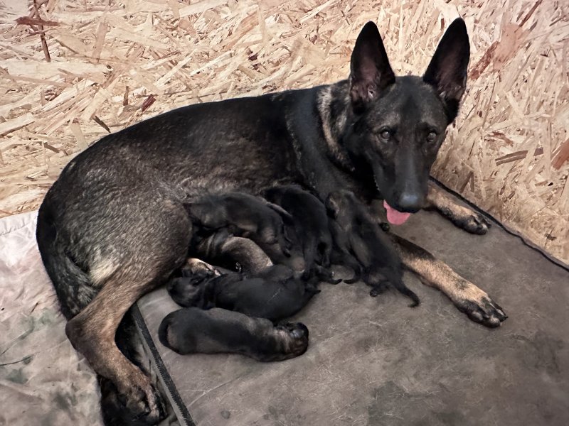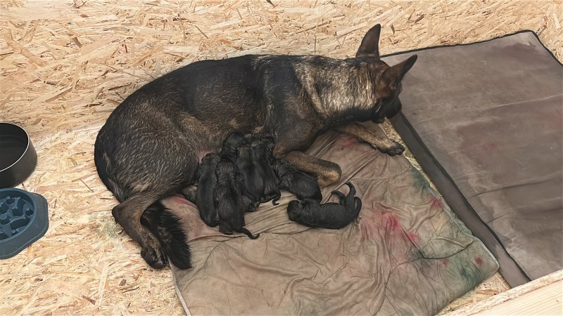mother is working blood line, kc registered, and she’s lovely and just wants to play all the time, she’s very friendly and great around kids. And protect trained