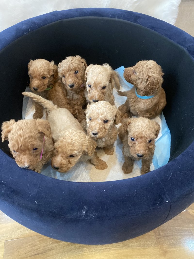 e have 8 beautiful goldendoodel puppies 5 boys and 3 girls available to view with their mum .Puppies will be ready for new home on second of December .All pups will be warmed, vaccinated and microchipped before they leave home.For more questions please feel free to contact me anytime.Thanks