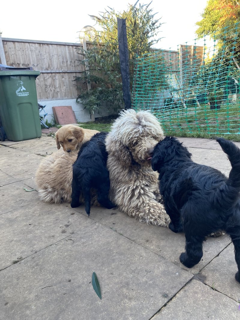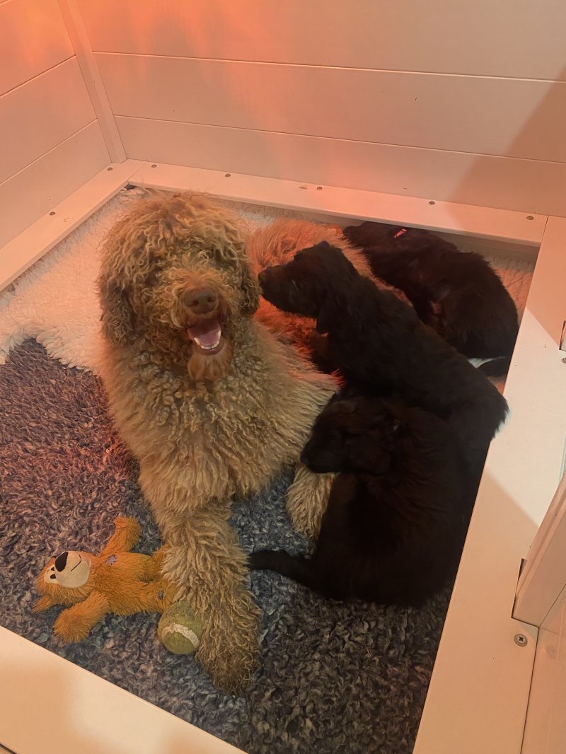 We’re excited to share that our beautiful dog Stella has had a stunning litter of 7 Goldendoodle puppies — 4 girls and 3 boys, full of cuddles, curiosity, and character!