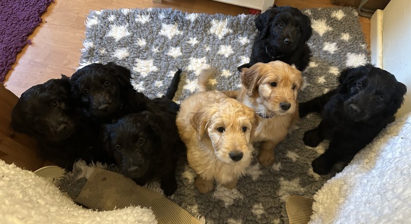 A stunning litter of 7 non shedding Goldendoodle puppies — 3 girls and 2 boys available.