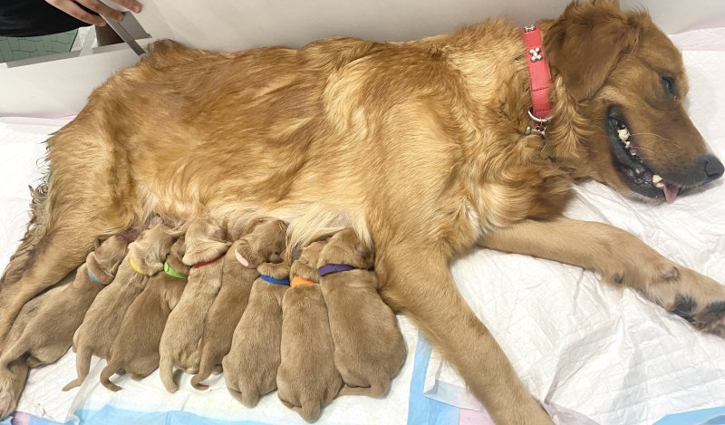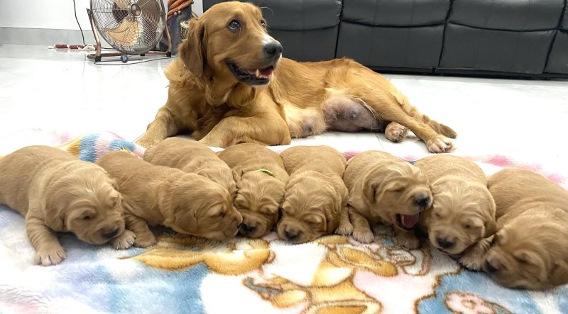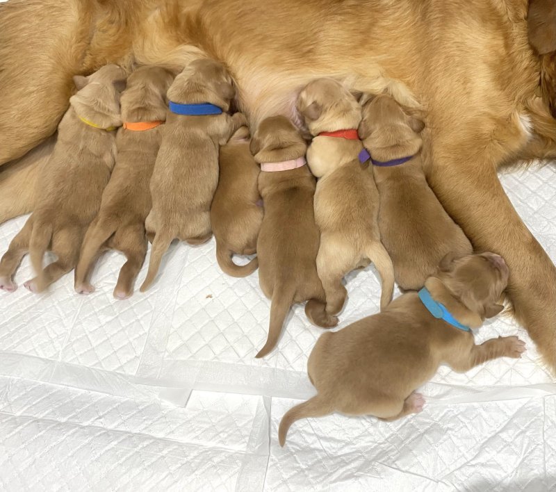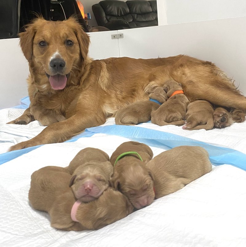 Through careful research we decided to partner our gorgeous girl Bella with the stunning Goose (KC Name: AGLABS GOLDEN GOOSE OF FALLOWFEN). We believe their personalities and traits will perfectly complement each other to make a stunning litter of puppies. Brought up in our family home these puppies will be well socialised and used to children.