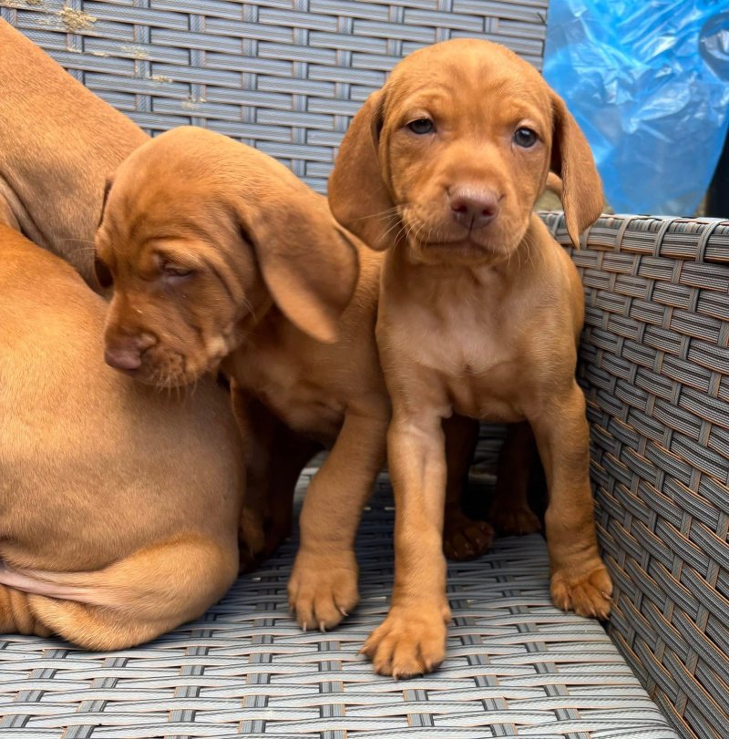 We are proud to announce that 2 girls and 2 boys are looking for their forever homes, these pups are some beautiful examples of the Hungarian viszla, raised in a family home amongst 4 children and also with our other pets,also both parents can be viewed, they are also in the pictures above ..They have an outstanding pedigree and will leave with first injection microchipping , wormed etc. they are ready now. If your struggling to for transport can also deliver price to negotiate. Thank you for looking
