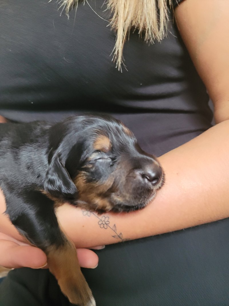 Boy 2: Black with brown paws. (We call him 'Bear' and is the biggest of the litter).