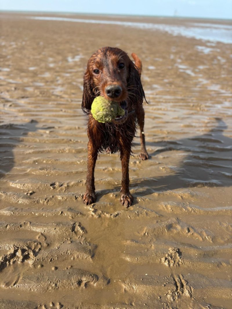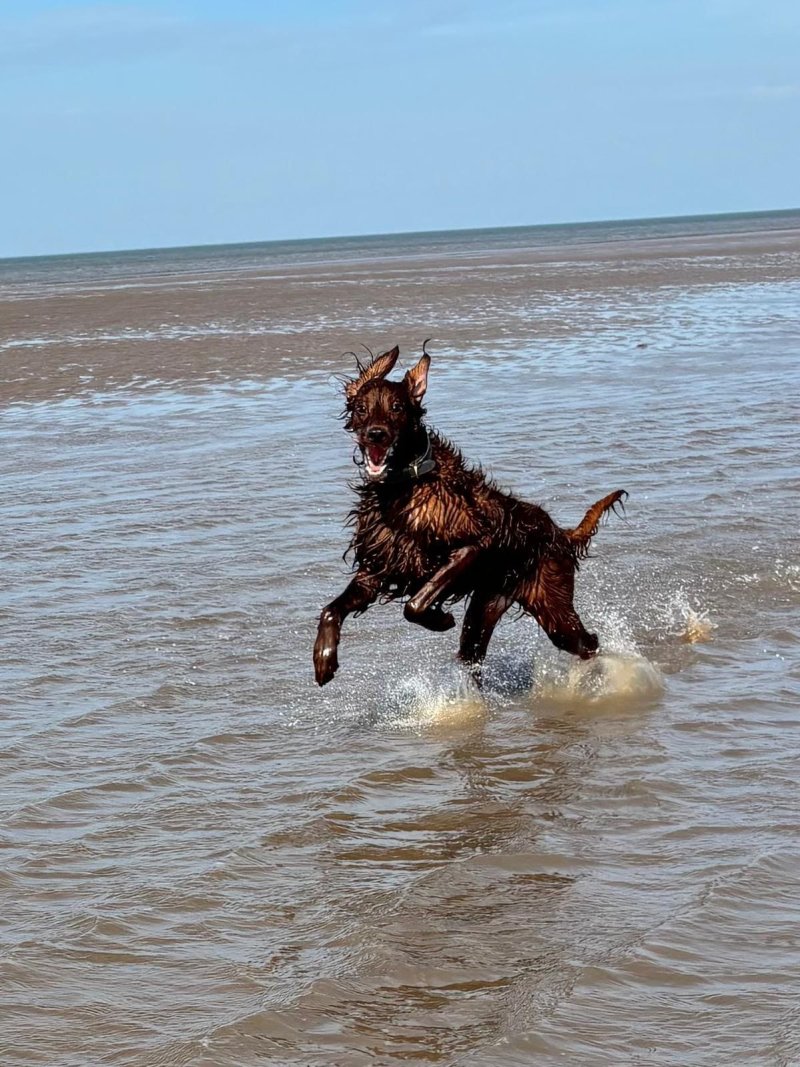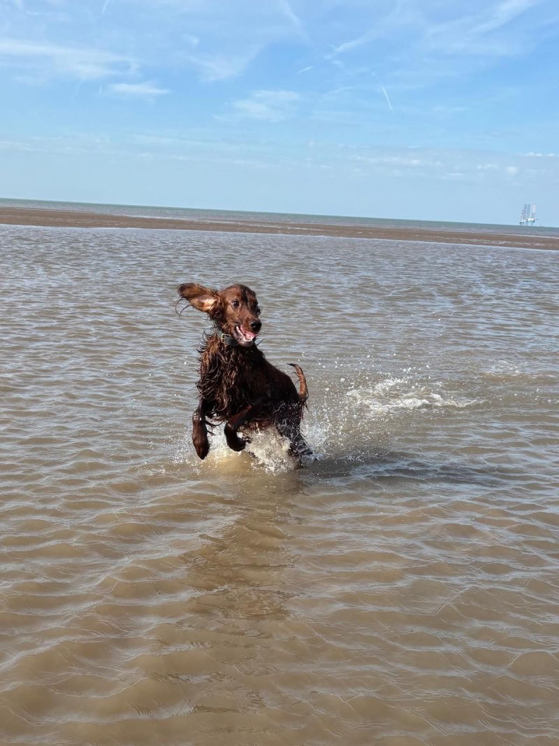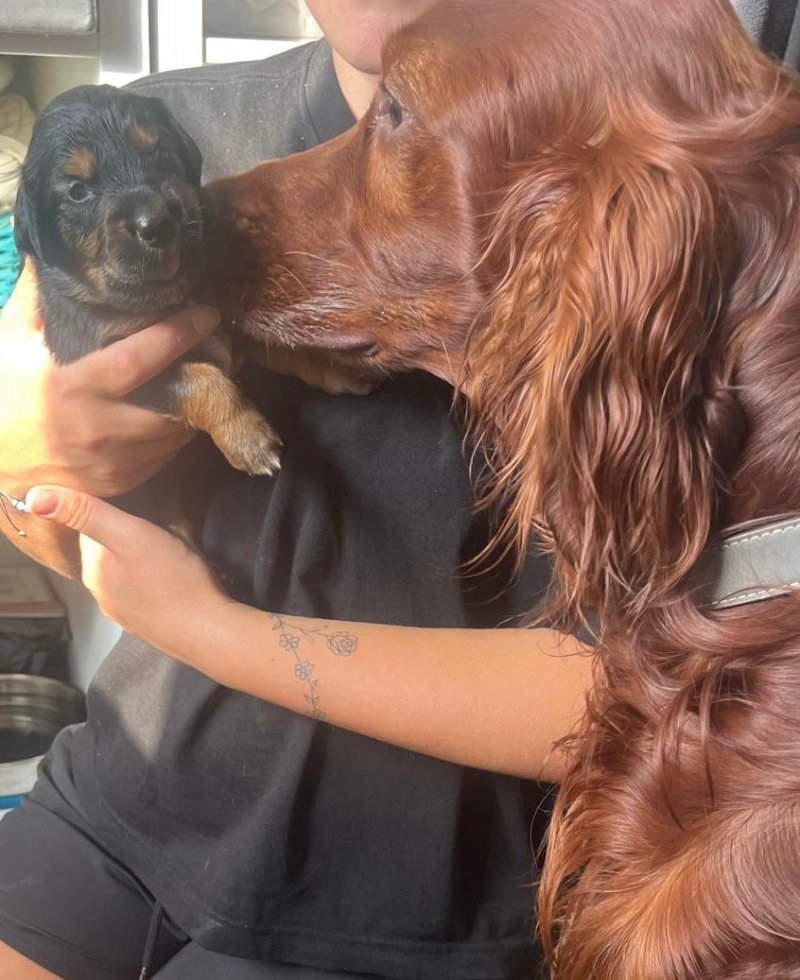 Dad is an KC registered Irish red setter with a lovely temperament also.