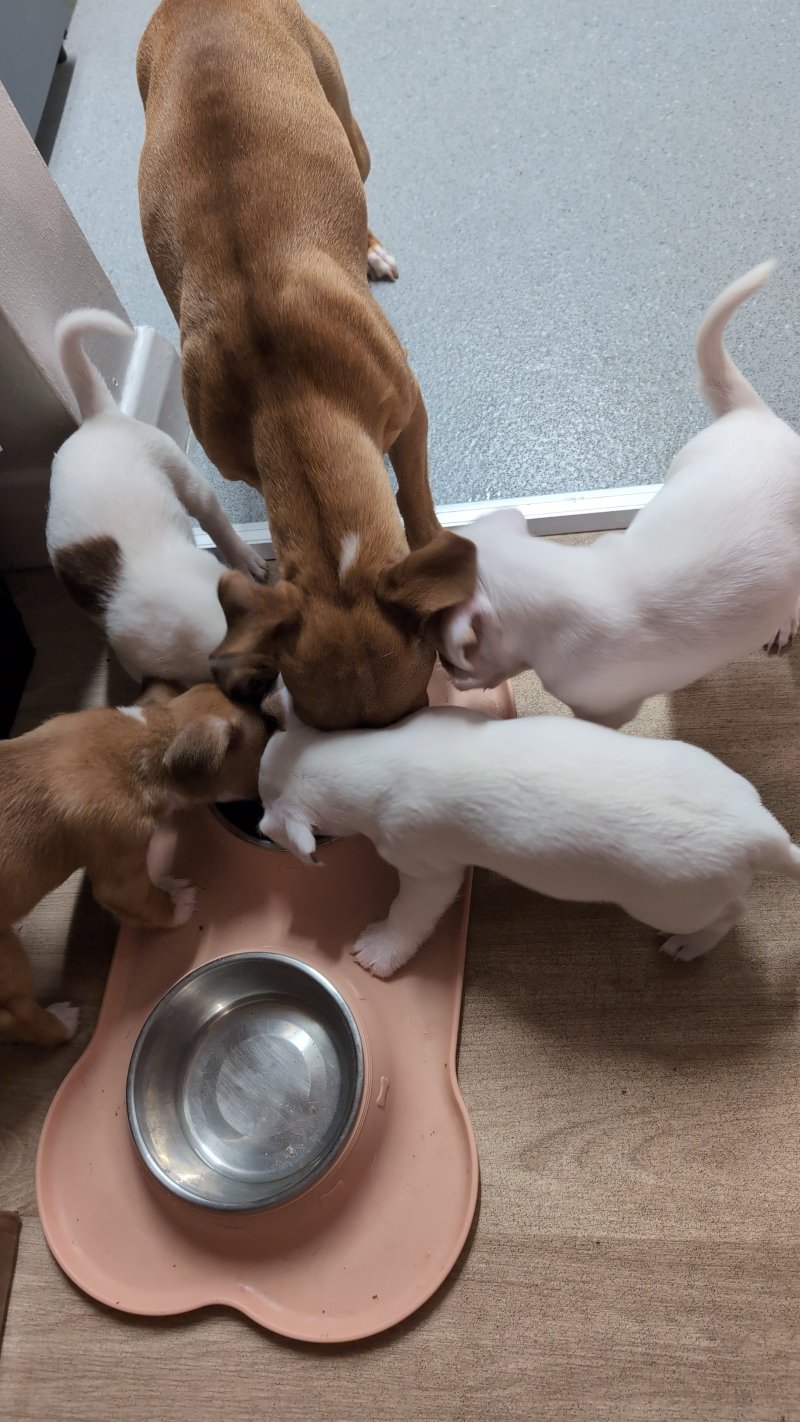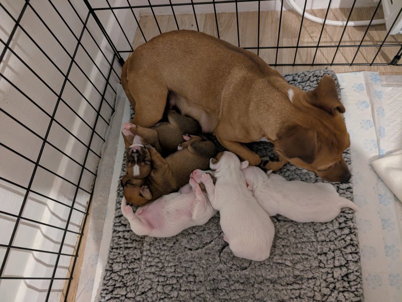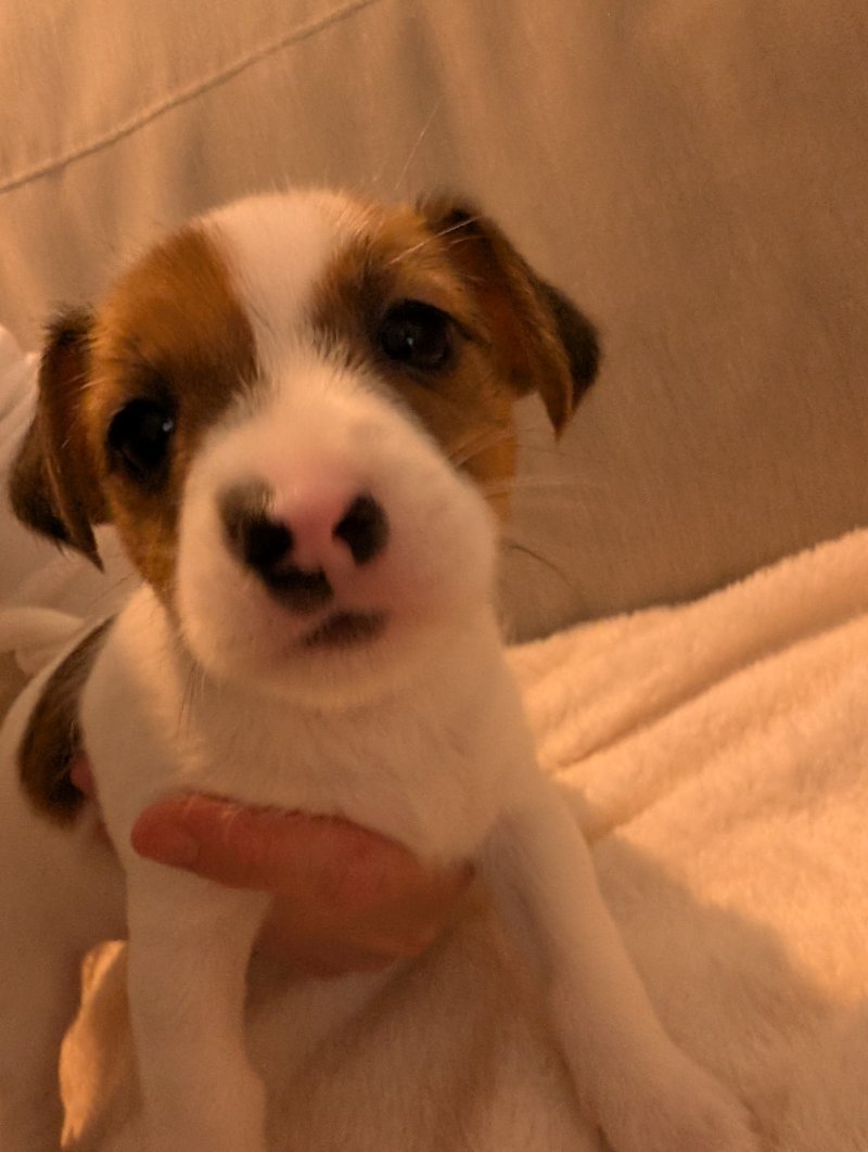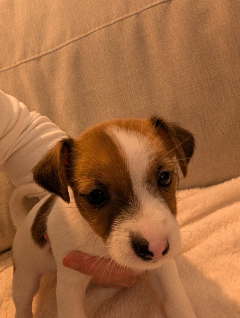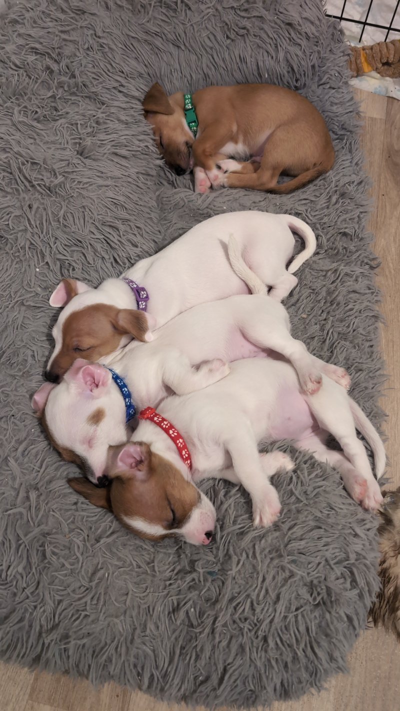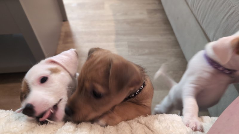 Four very active, adorable jacks puppies 2 girls , 2 boys , one of the boys look like mum and the other three look like that daddy. But always into mischief and always love to play.