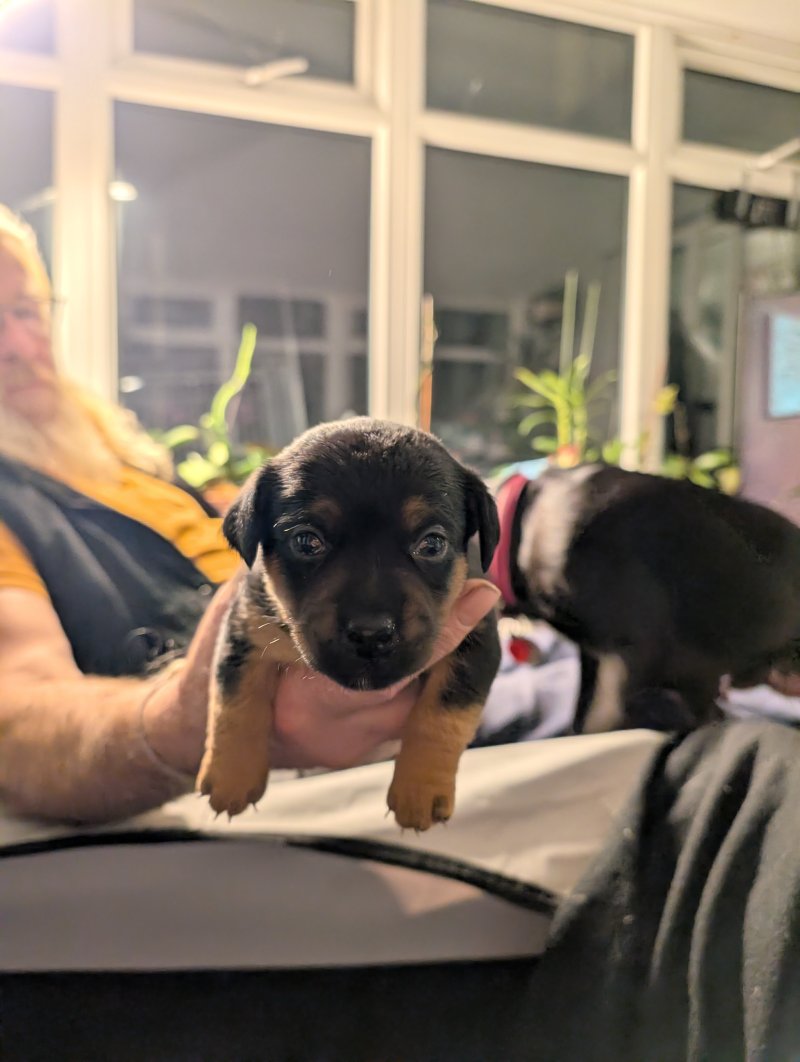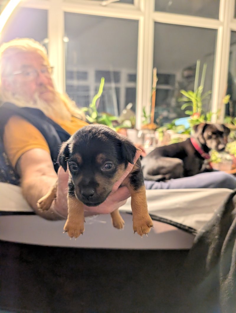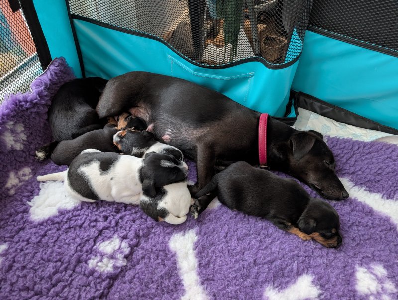 We have 5 little boys who would love to meet their forever new owners. Dad is a broken coat try colour, short legs. Mum is smooth coat and dark chocolate colour all over apart from tiny tips on her toes and double hart shaped chest blase in white, there is also patterdale 6-7 generations ago in her blood line. That will have microchip, full vet check and will be having their first vaccine at 6 week slowing you to have the final one at 10 weeks. This gives them a head start with their socialisation.