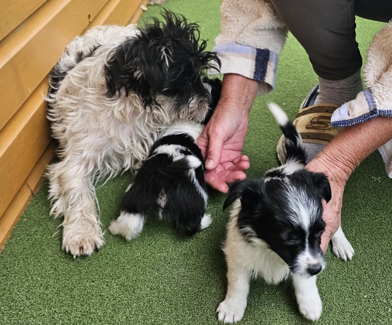 Here we have a beautiful litter of puppies. 2 boys & 1 girl. Mum is a shiztzu terrier, dad is a apricot poodle. Puppies are wormed and fleed to date. Microchipped, raised around children and adults. Puppies will leave with a blanket, toy, bag of food.