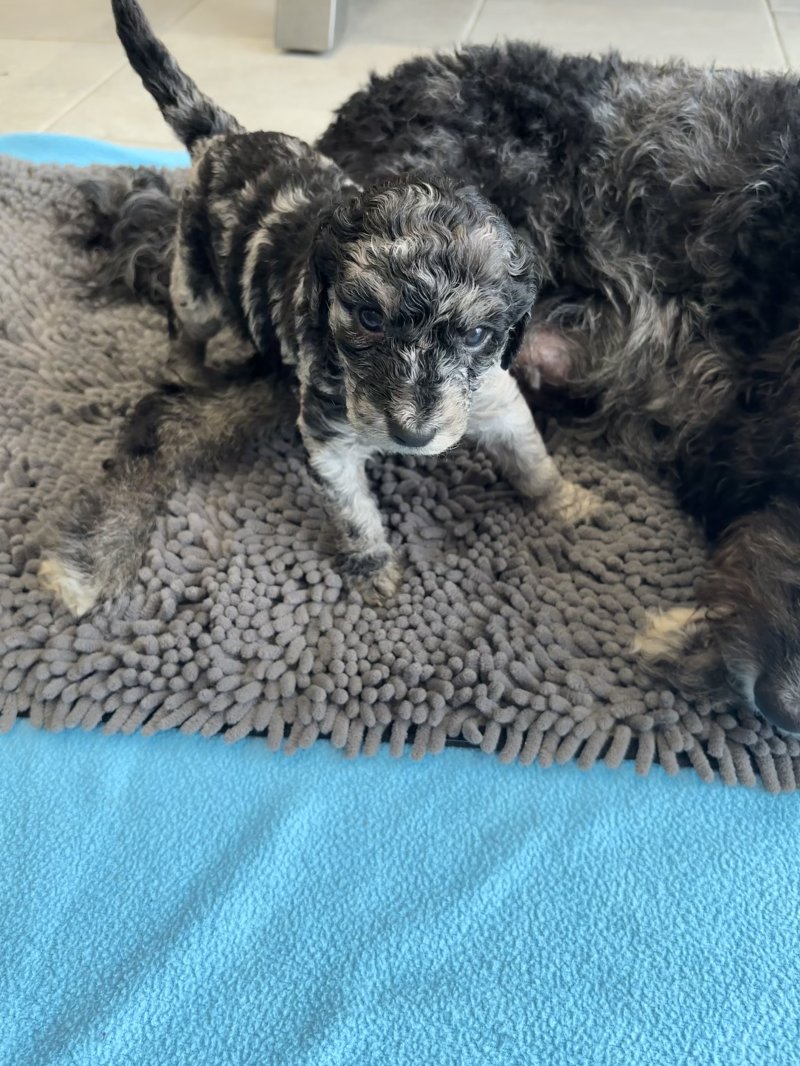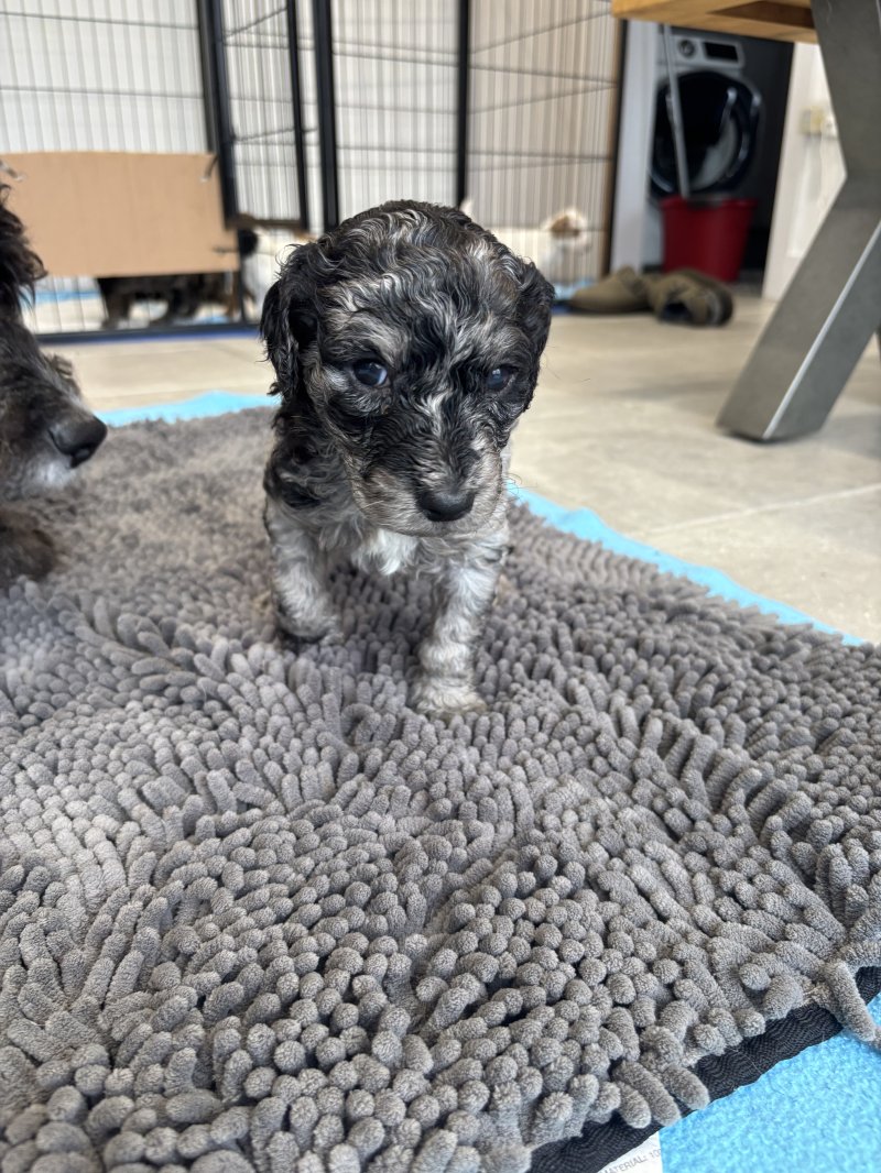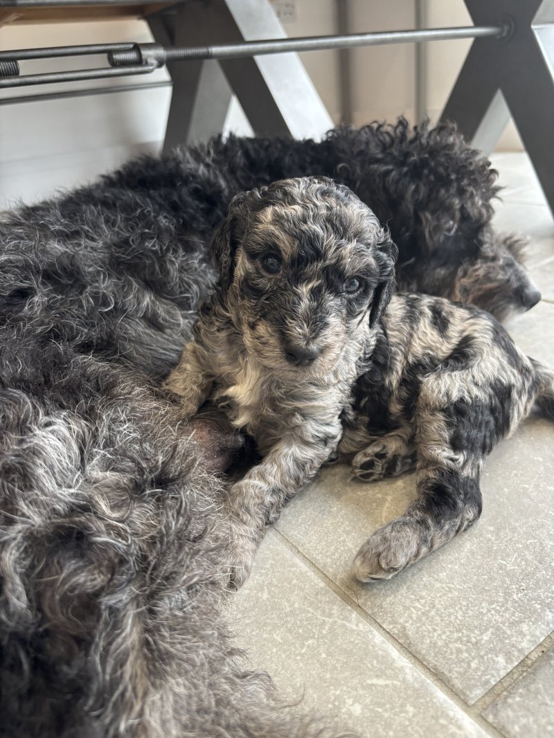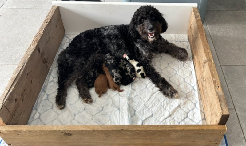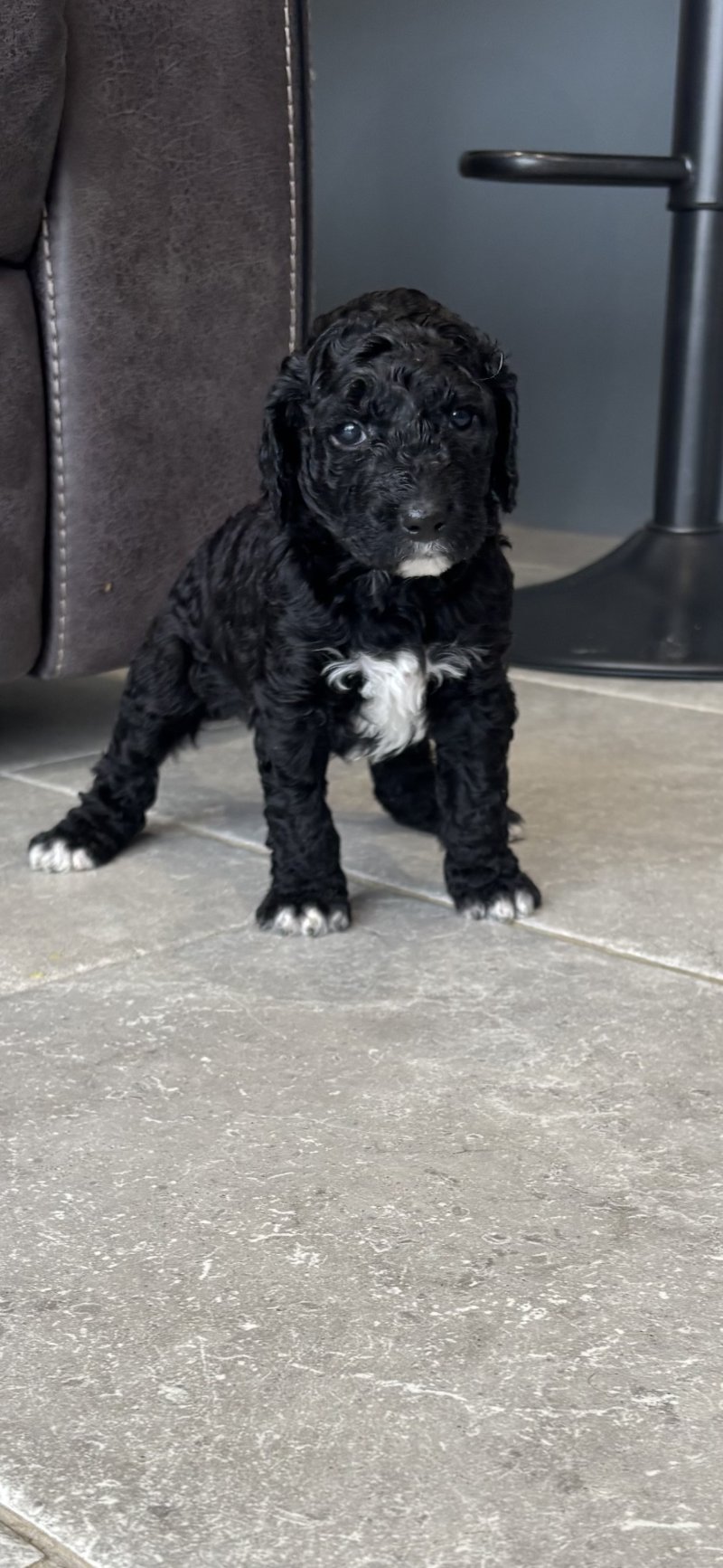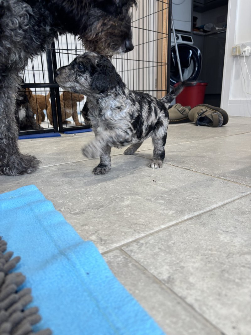 Raised in our busy family home, they’re well-socialised with all household noises and have been handled daily by children. They’re confident, affectionate, and full of that classic Labradoodle charm.