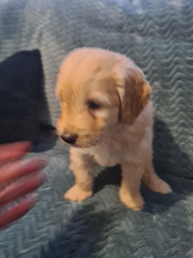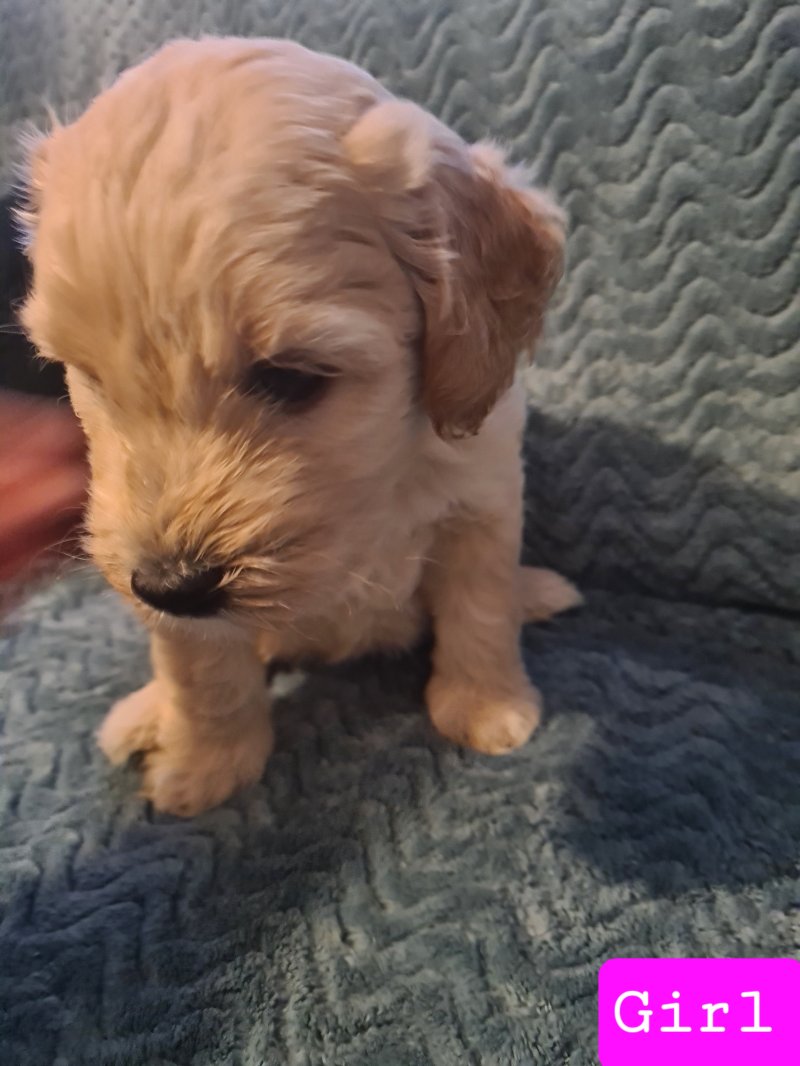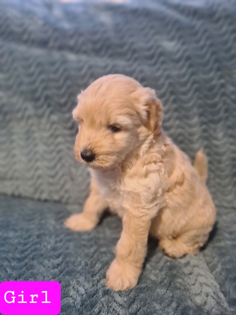 π Pink Collar Girl – The Gentle Heart of the Litter π Meet our beautiful Pink Collar Girl, a golden Tiny/Mini Labradoodle with the most adorable Apricot-tipped ears. She’s one of the most loving and gentle puppies you could ever meet — calm, affectionate, and full of kindness. πΎ Personality Highlights: Exceptionally gentle and nurturing — always seen cleaning and caring for her littermates π Loves cuddles and thrives on human affection Peaceful and calm, with a naturally sweet and trusting nature The perfect choice for anyone seeking a quiet, loving, loyal companion π