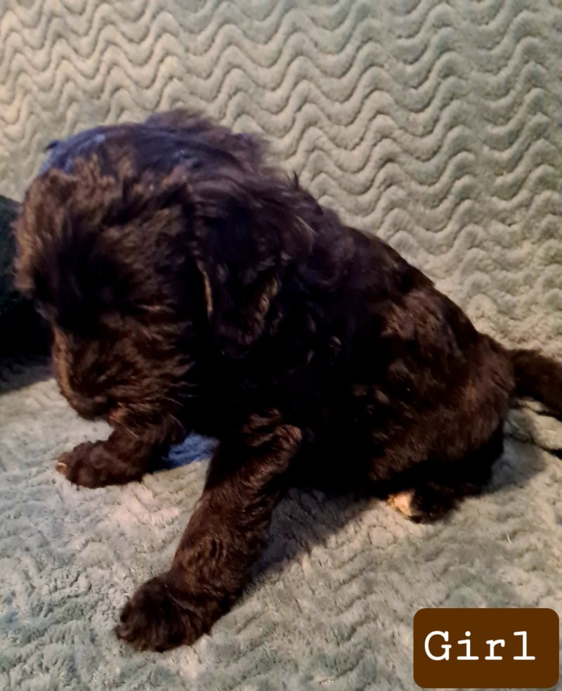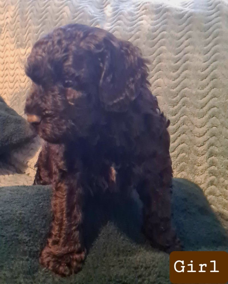 π€ **Brown Collar Girl – The Cheeky Charmer of the Litter** π€ Say hello to our **Brown Collar Girl**, a gorgeous **black Mini Labradoodle** with a cheeky grin, a **white chest stripe**, and a personality that lights up the room! This little lad is full of fun and mischief — always ready to make you laugh. πΎ **Personality Highlights:** * **Cheeky and playful** — loves to play fight and romp with his siblings * **Full of character** — curious, confident, and always up for fun * **Very cute and funny**, with expressive eyes and an irresistible charm * Brings endless joy and laughter wherever she goes π¨