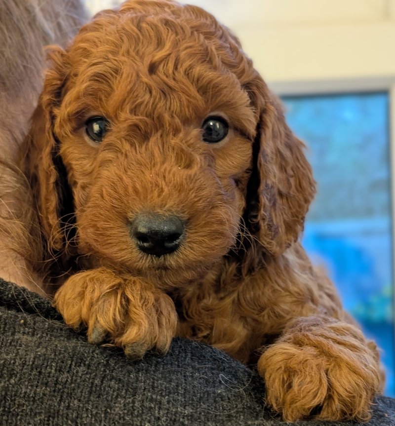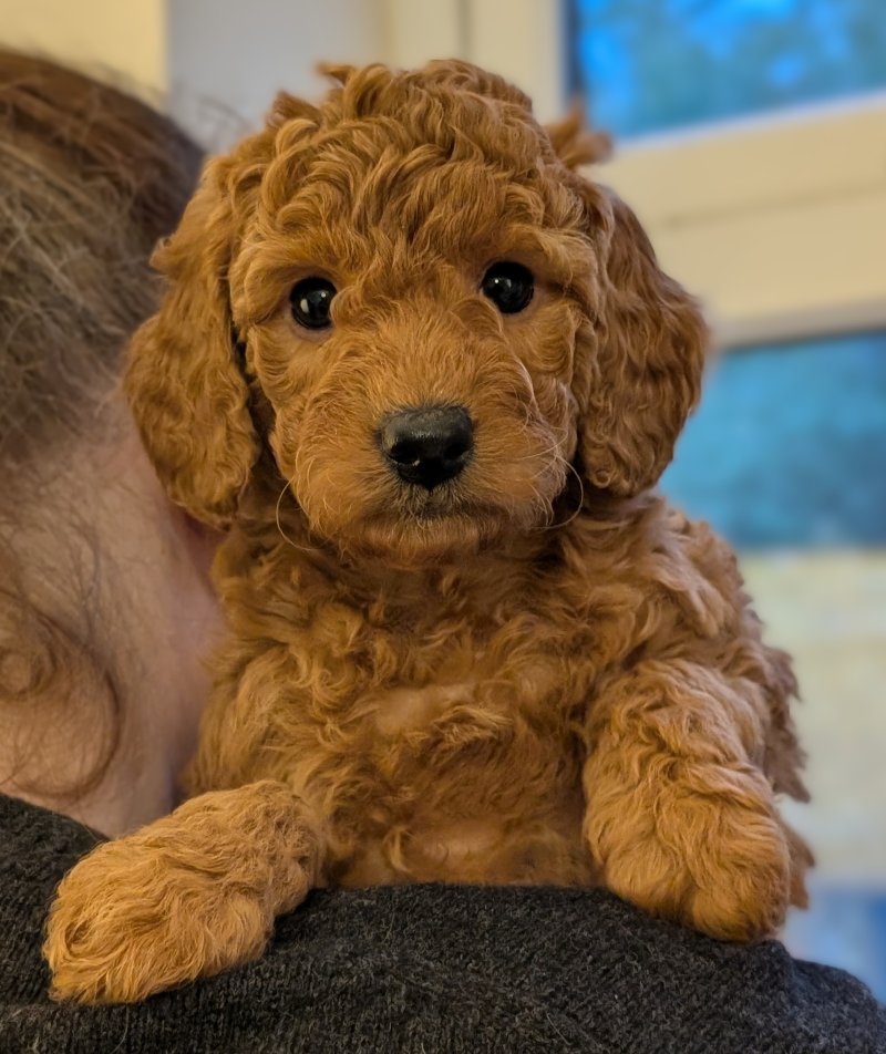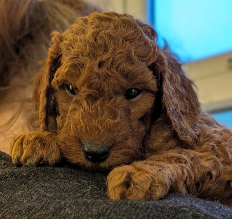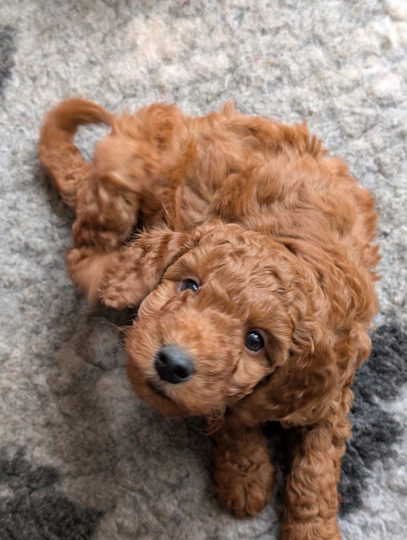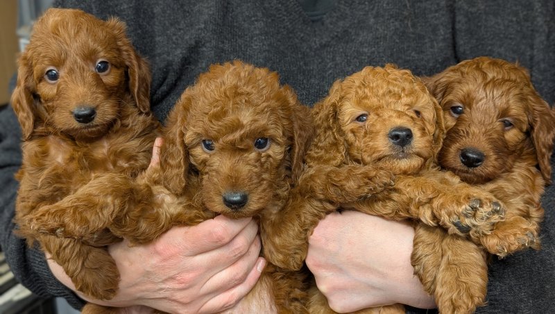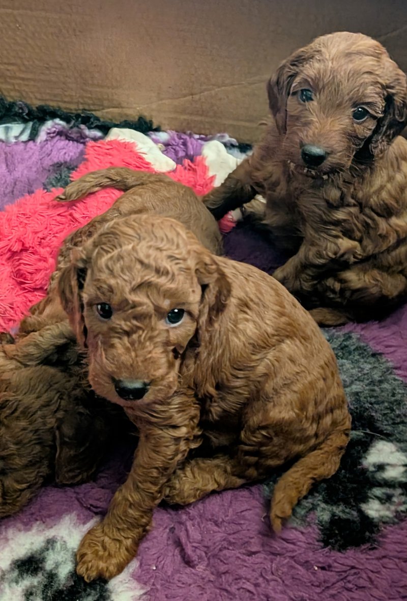 Meet our litter of F1bb red Miniature Labradoodle puppies, born on 21st August in our family home.