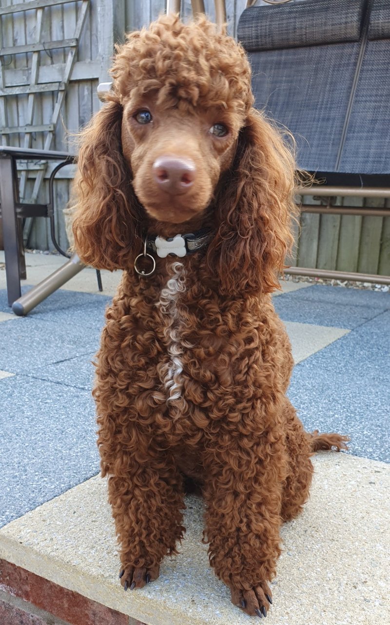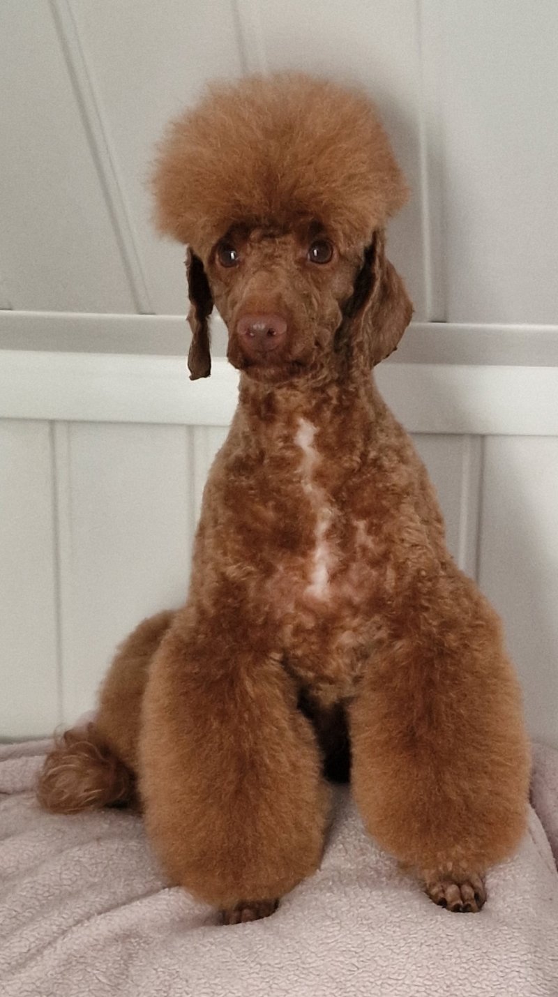 Dad – Murphy (UK Kennel Club: Red Prettyboy): A red-coated miniature poodle with full genetic testing, adding his qualities to the litter through selective breeding on both sides.