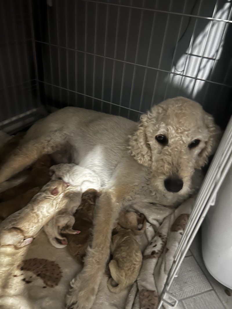 I’m am super proud to announce the safe arrival of my sweeties beautiful litter of 11 fur-babys f2b multigenerational Labradoodles stunning dark apricots and medium apricots which are very sought-after colours. Hypoallergenic coats Mom is our family pet and a f1b labradoodle great loving temperament. Also dad is our family pet standard poodle kc registered handsome boy very loving clever lad. So on this occasion, which is rare you can meet both mum and dad and spend as long as you like getting to see their wonderful temperaments. I am a groomer of 20 years and do offer half price Grooms if you would like to use my service this way over the years the money you save on Grooming can pay for puppy also I get to see my babies growing up. I’m in regular contact with Sweeties past litter and people cannot praise her babies enough!! Actually 3 previous owners have been messaging me for years asking for another puppy and secured another addition for there family they can not thank me enough I have posted just a few photos of these. I can get testimonies off this if you like. This will be sweeties last litter she is a wonderful mummy. They will be ready to leave for there forever homes on 13th December. Photos will be updated weekly.. They will be brought up being loved and interacted with daily within our busy household with children. A none refundable deposit will secure puppy’s and photos will be sent weekly too new owners. Viewing will be from 4 weeks this gives sweetie the special time with them first. I have got videos of boys and girls if you want me to send to you on WhatsApp. It won’t let me upload on here. Puppy’s will come with the option of 1st or 1st and 2nd vaccine they will be microchipped and a health check.