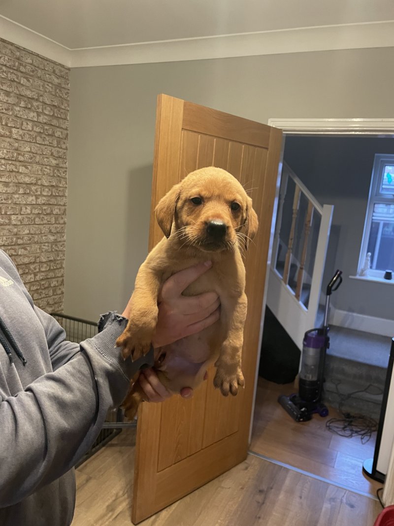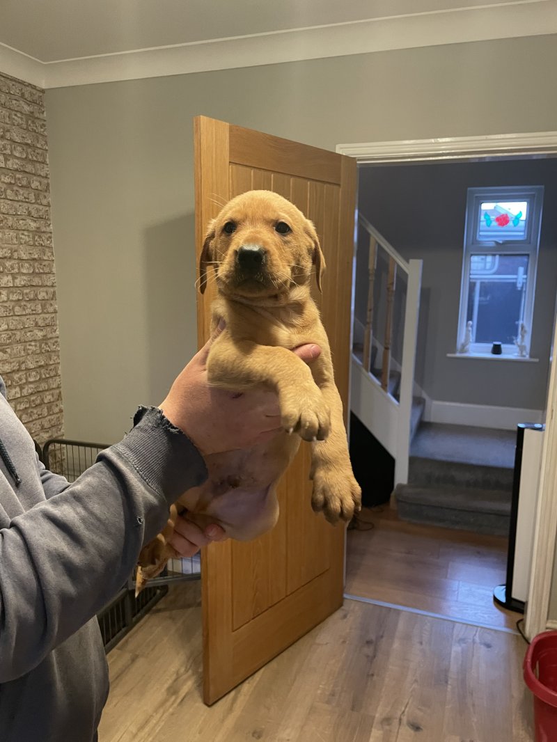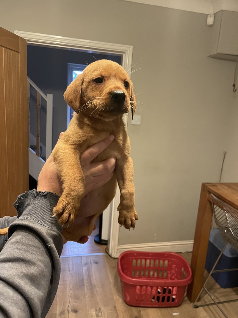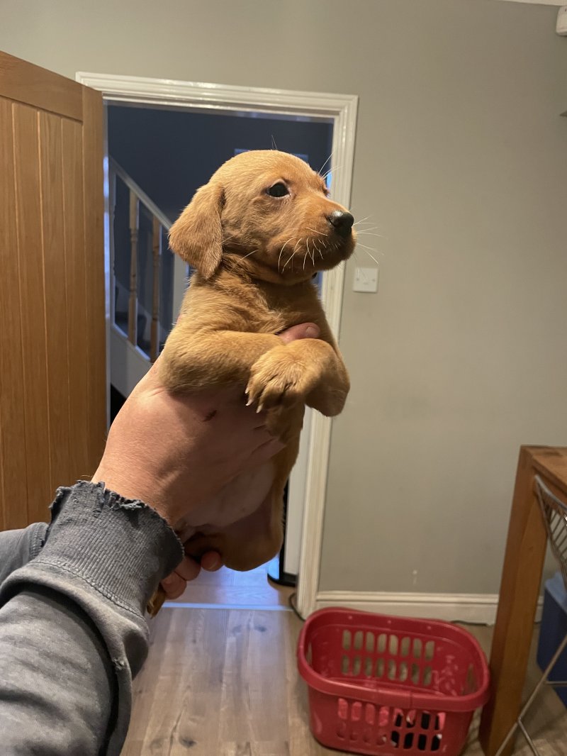 Here I have my fox red Labrador pups, mam is our pet and dad is a working Labrador, both parents are hip scored elbow scored and eyes tested all clear, pups have been around all general household noises also young children and adults, pups will come microchipped, flea treated and wormed, pups will all leave with a bag of pup food that they are currently on pups are ready to go viewings are very welcome thank you