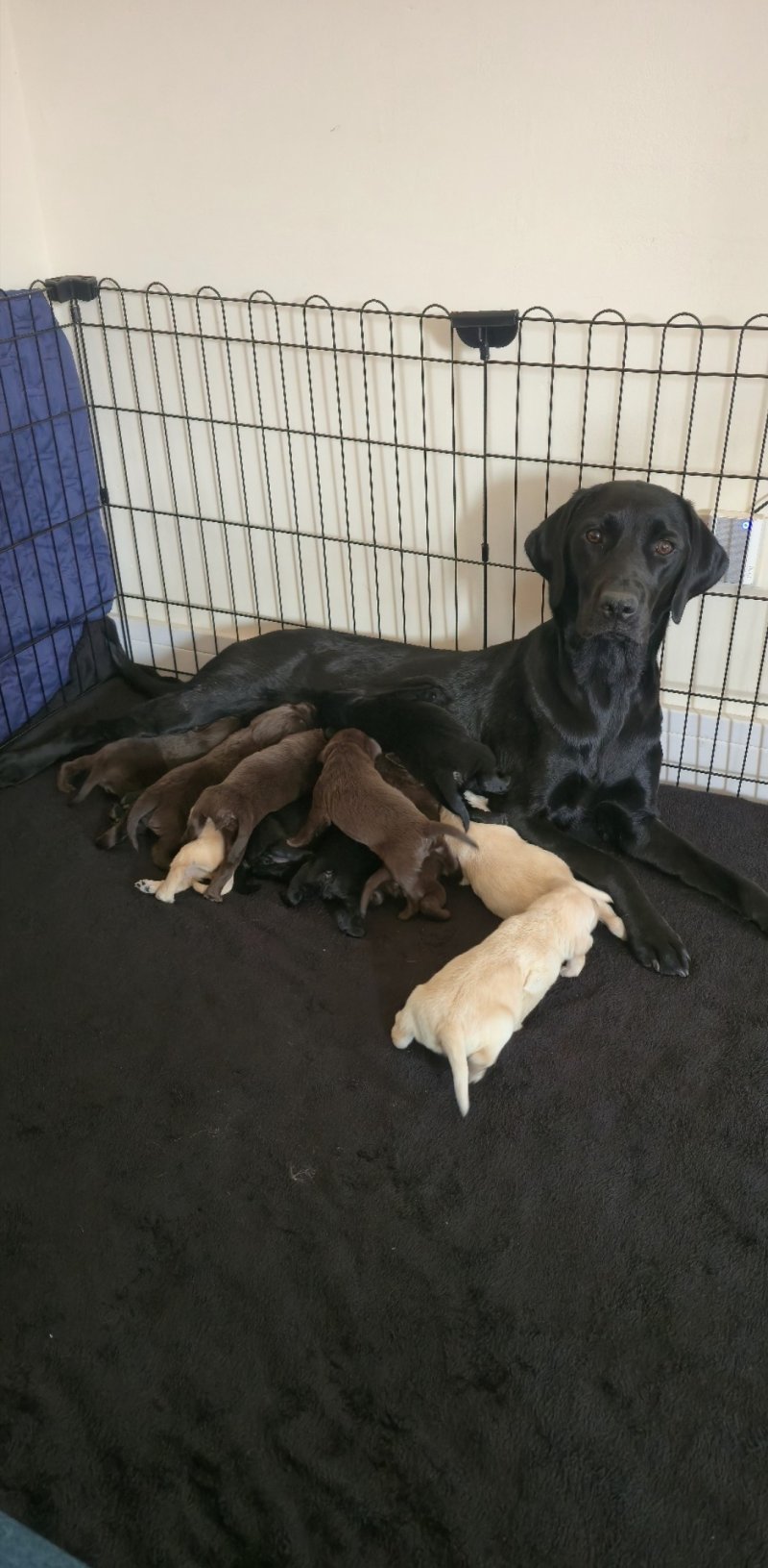 We are delighted to present our beautiful litter of 11 Labrador Retriever puppies, born on 29th June. Raised in our home with lots of love, these pups are well-socialized, used to everyday household sounds, and familiar with crate training and puppy pads.