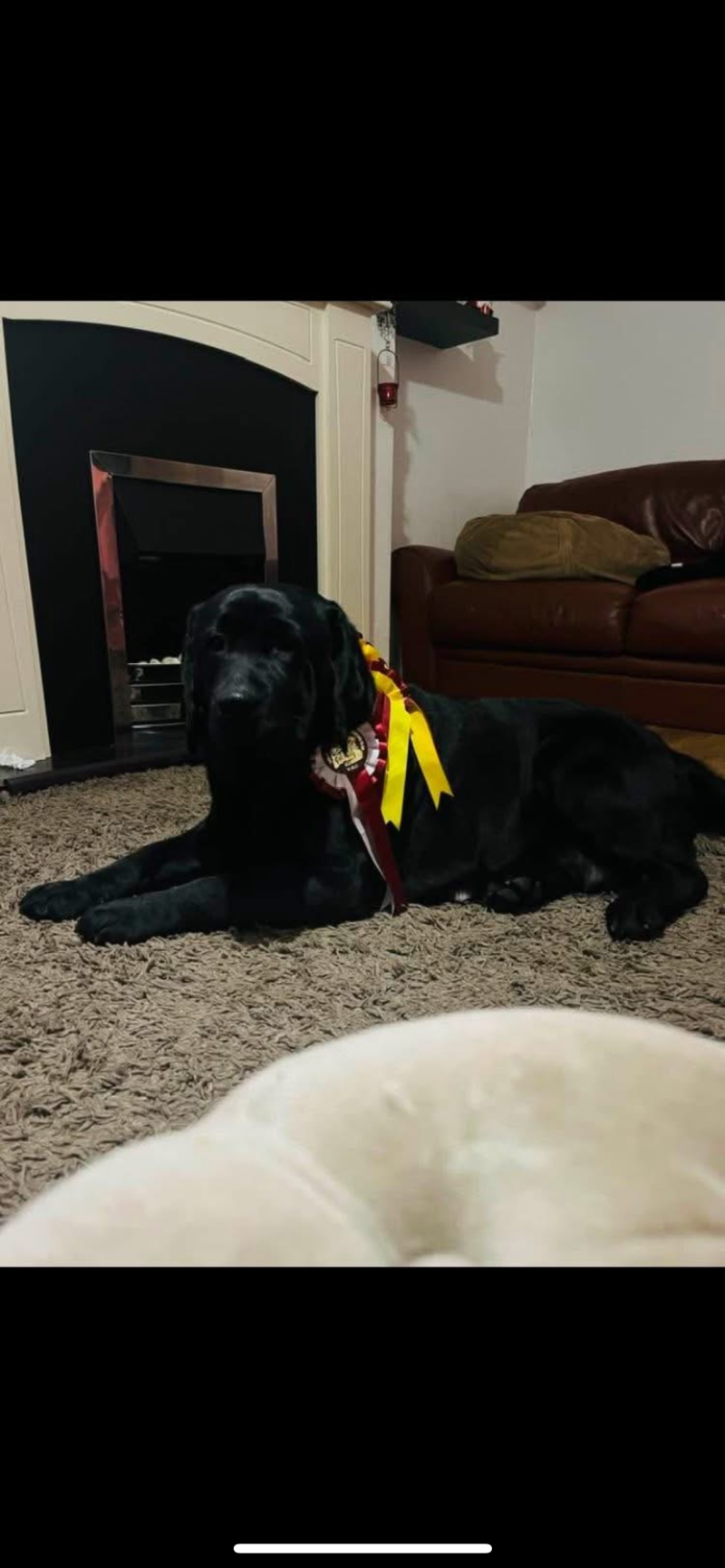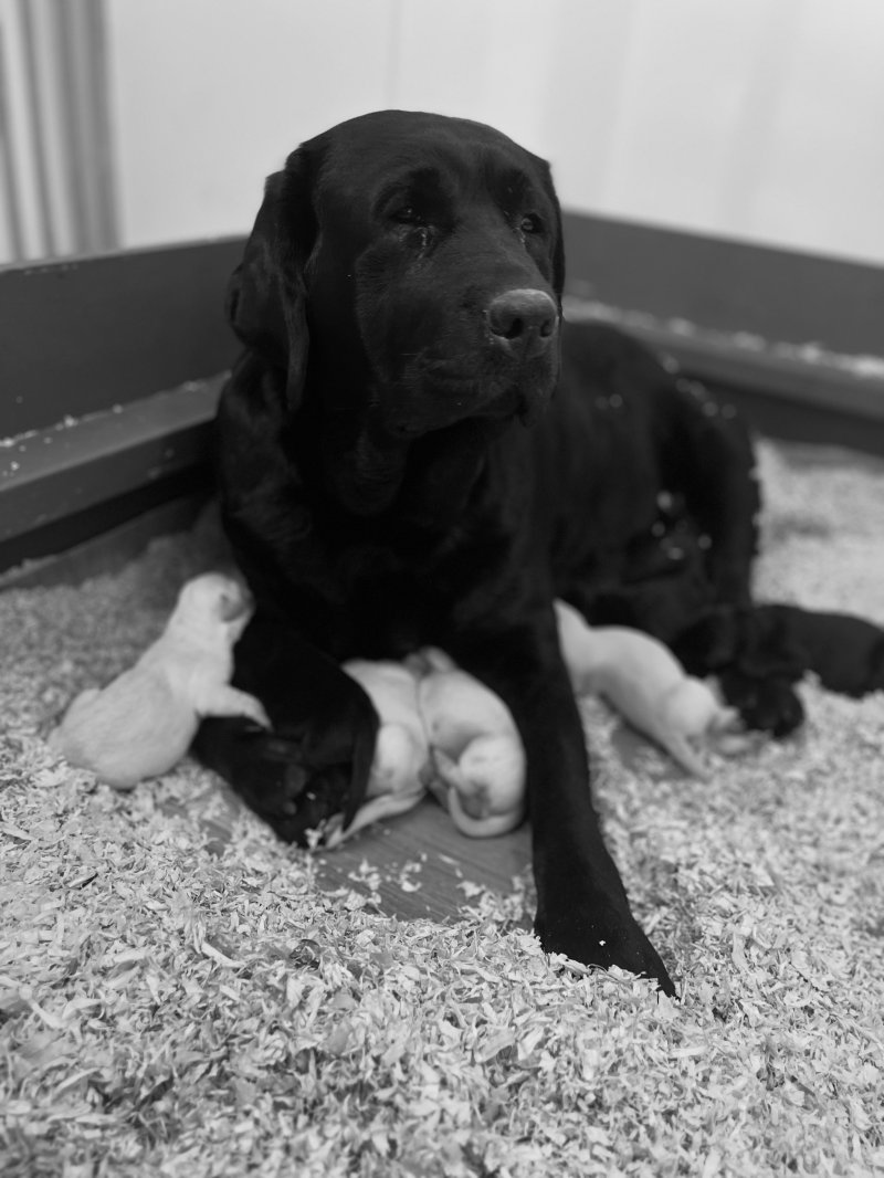 Here I have a beautiful litter of two yellow bitches, three black dogs and two yellow dogs . Mother is a beautiful black show type that is a ukranian import with champion lineage in Europe/worldwide. Father is a stunning yellow show type with lots of rocheby lines with many champions in the lineage, these pups are proven to do well in the show ring as I kept two from the last litter- identical mating and both dog and bitch are qualified for crufts along with siblings doing well in the show ring , they have calm kind temperaments and are fantastic with children and other pets , puppies from the last litter have recently had their hip and elbows scored with fantastic results of 0/0 hips and 0 elbows , puppies will be well socialised and reared on a high quality diet and will leave with a 2kg bag of the food they are weaned onto , pups will be microchipped and first vaccination with a full health check from the vet , lifetime support is offered from myself . Deposit reserves . Any more information please don’t hesitate to get intouch . Attached are photos of mum and older siblings . I will update puppy photos as they grow 💕💙