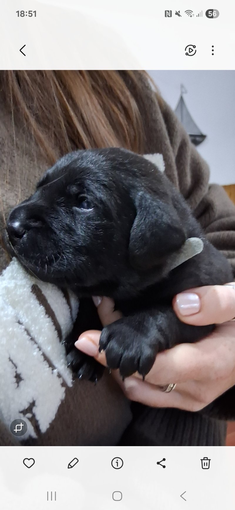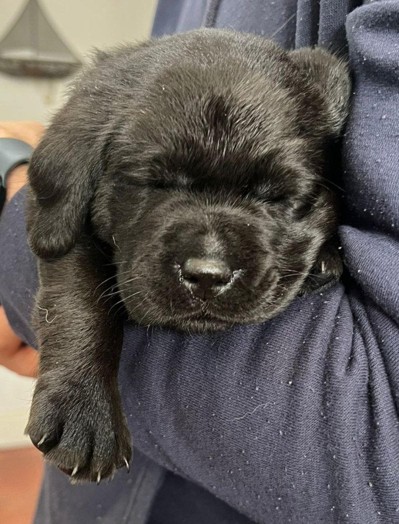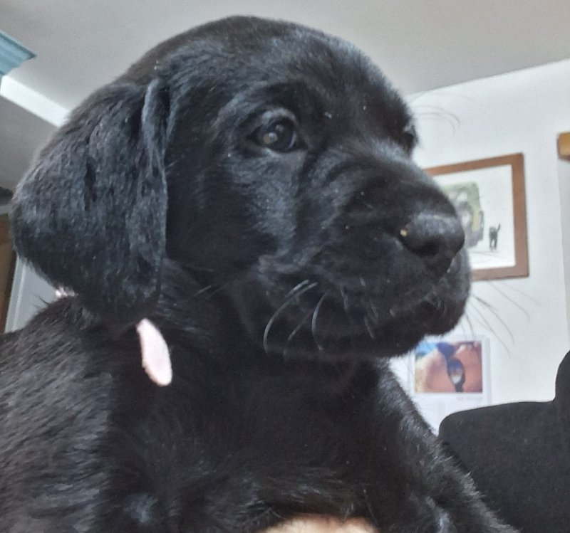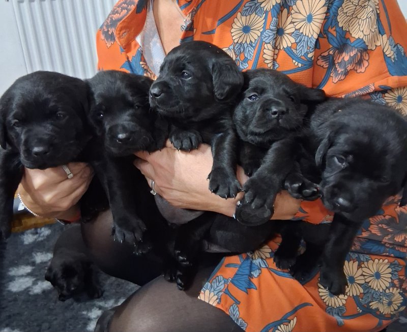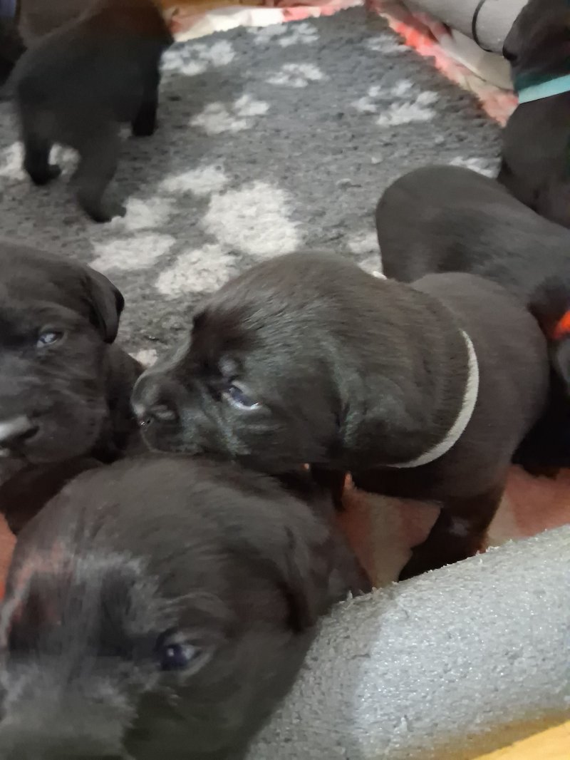 Eight happy, healthy puppies are settling in well. 5 girls and 3 boys, all black like their mum.