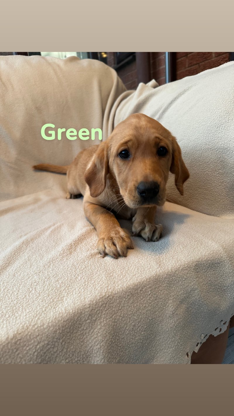 Green collar girl is a lovely chunky bundle of fun with lots of lively character to give her new family.