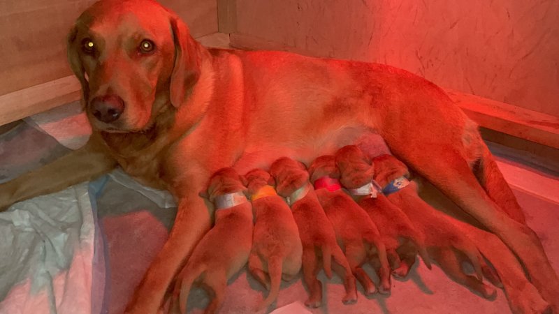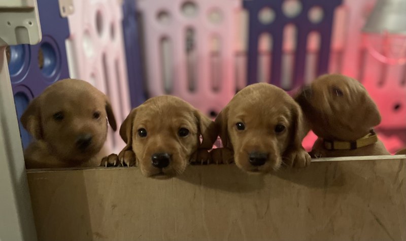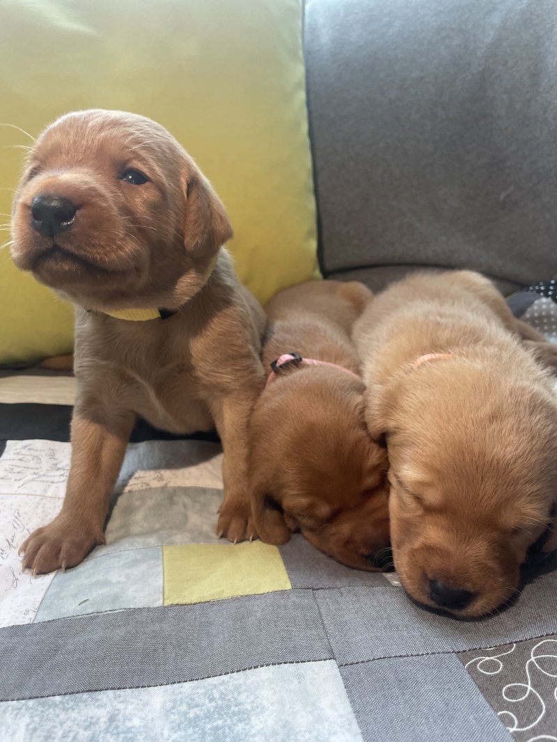 Our beautiful girl has had a litter of 6 puppies we have 2 girls remaining that need a loving home. Mum Is fox red 5th generation pedigree Labrador and dad is also a fox red working gun dog. Full health check for dad and both dogs are KC registered.