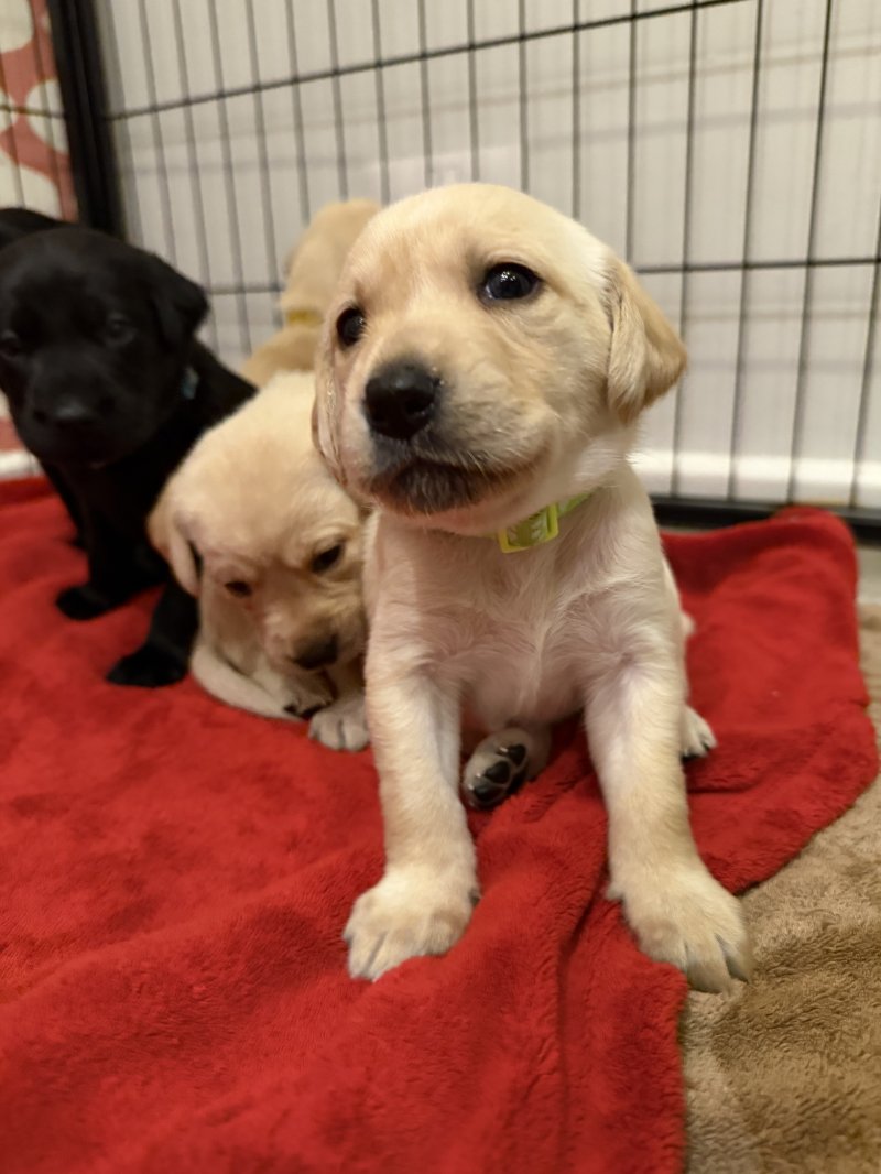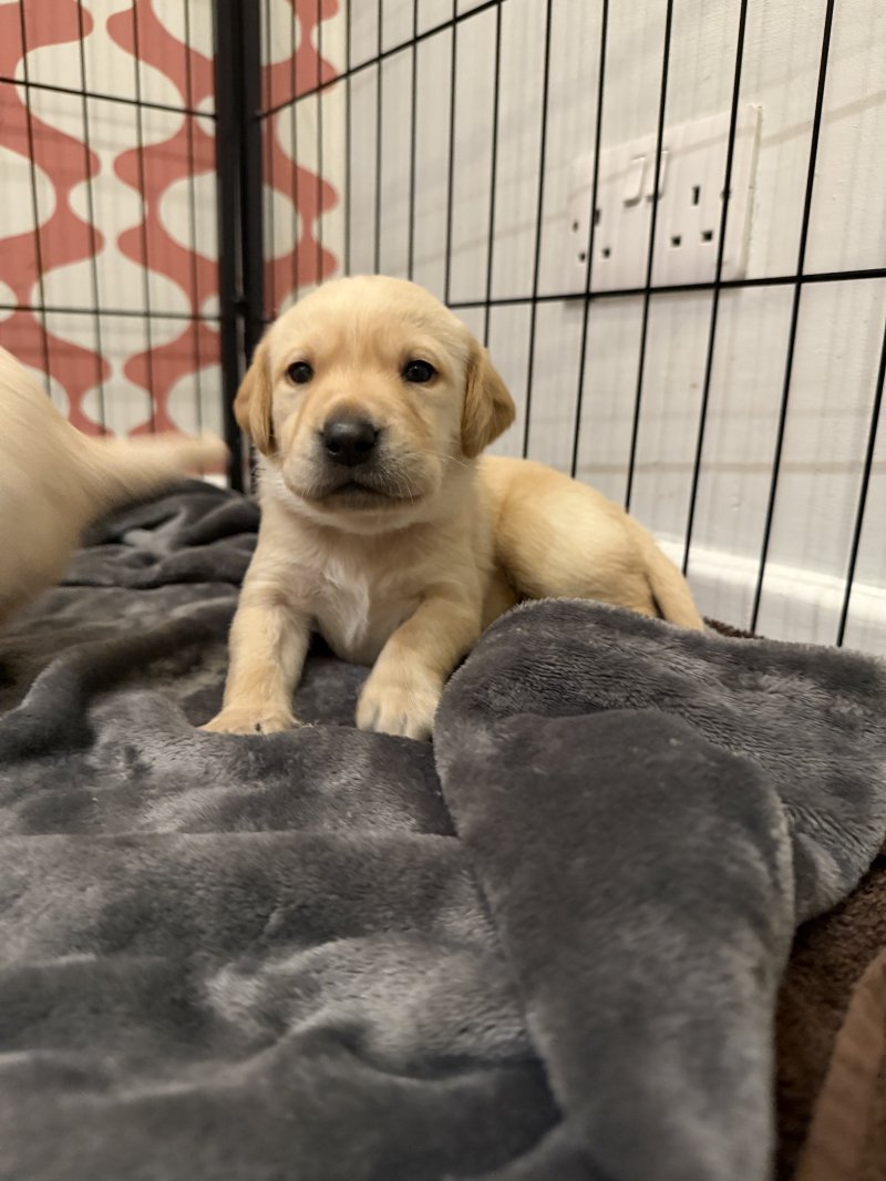 Our family dog from working stock has given birth to a fantastic litter of black and golden labradors. We have 1 golden boy and 5 golden girls, 3 black boys and 2 black girls available. This is poppy’s second litter and we kept a pup from the first who is viewable with mum (pictured) and also dad who is a KC registered golden lab who lives round the corner! The pups are nearly four weeks old and walking around and developing their unique characters. Questions and visits welcome!