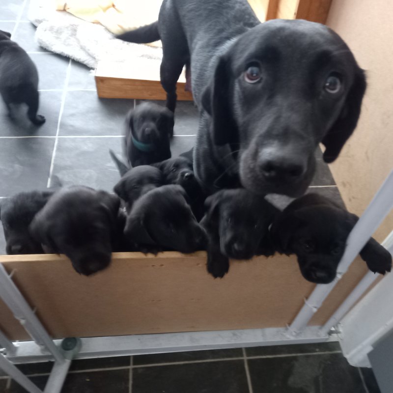 Our beautiful KC registered working Black Labrador Retriever, Bessi's given birth to her one and only litter of 9 gorgeous, black, healthy pups. One was secured before birth.
