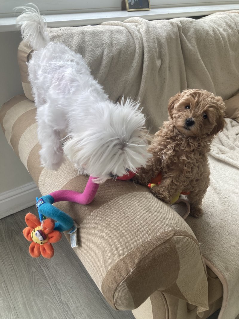 These adorable puppy’s have been exceptionally well socialized, making it hem an ideal companion for families. Both parents are loving family pets and mum can be seen. Mum is out own Maltese and dad is a health tested PRA clear toy poodle.