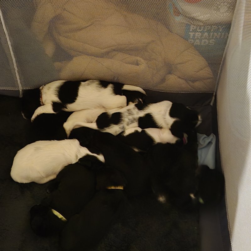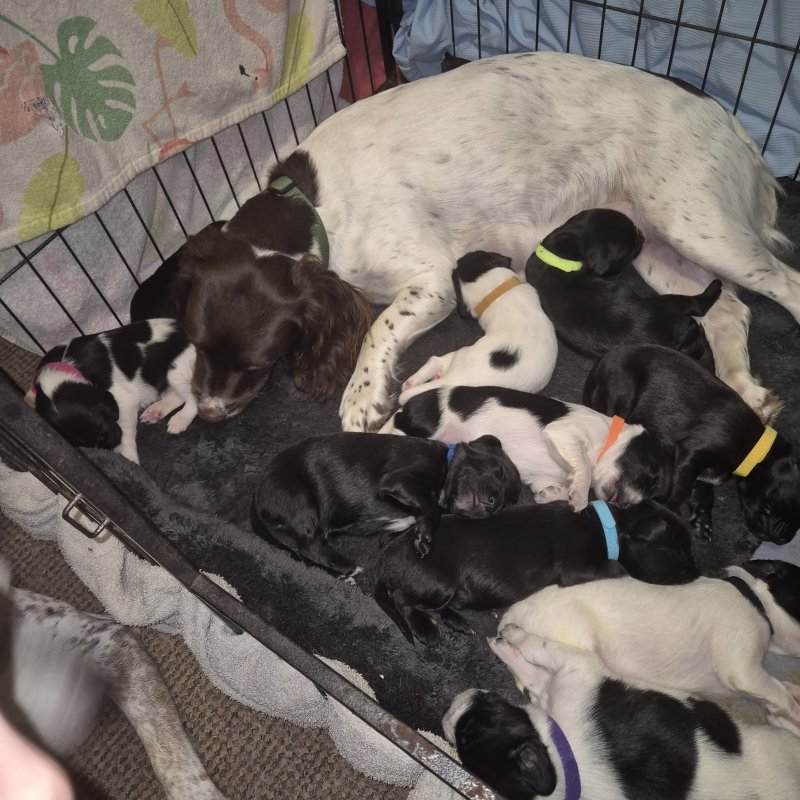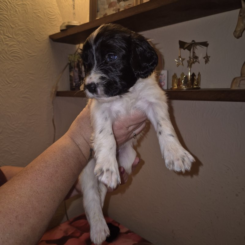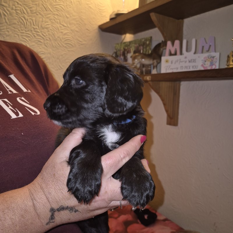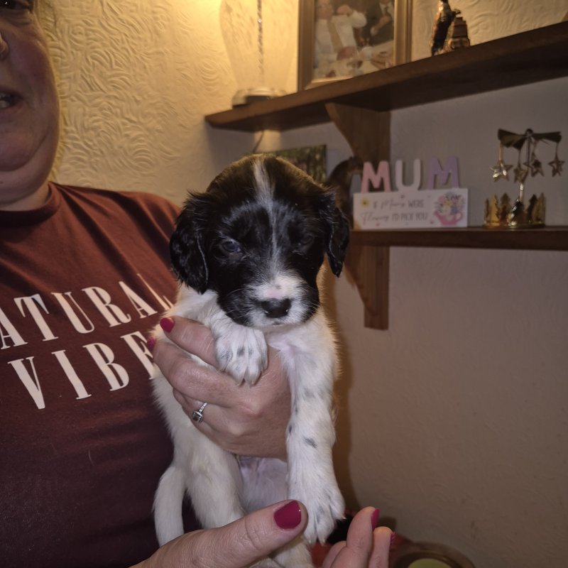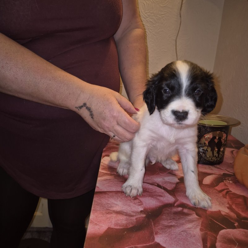 5 beautiful springer spaniel cross puppies 1 girl and 4 boys all looking for forever home. There 5 brothers and sisters have found theirs and now these guys need to their family.