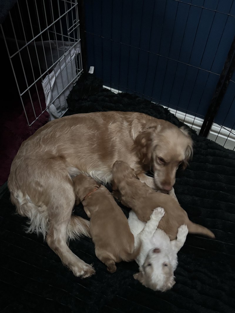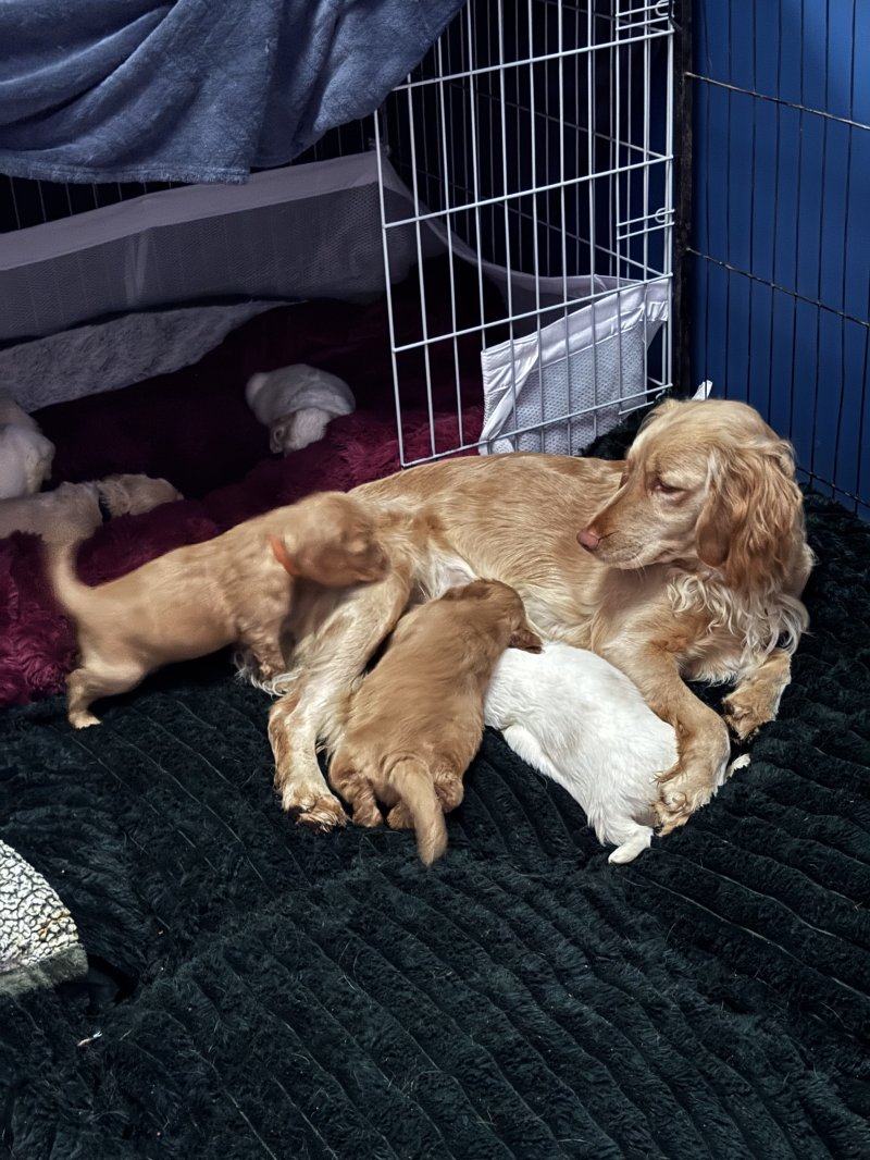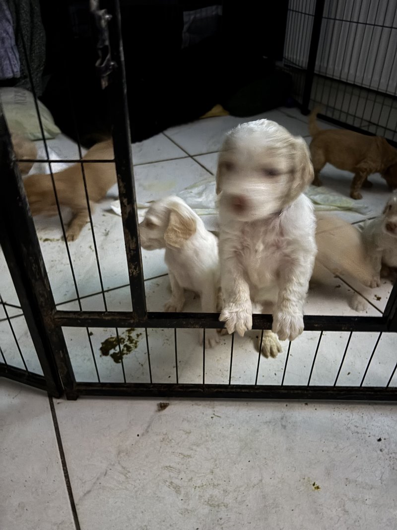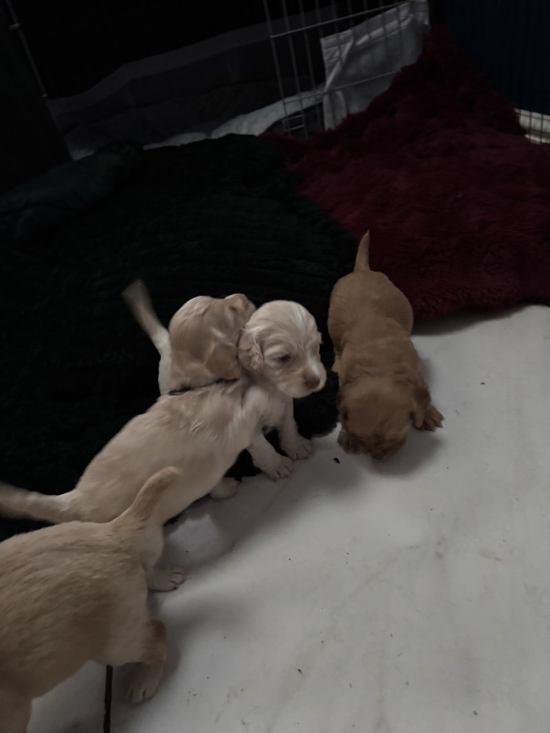 I am proud to show my beautiful golden cocker spaniel mixed dogs. They would make a perfect addition to your family, loving and playful.