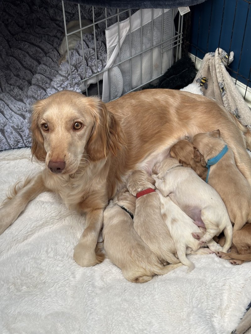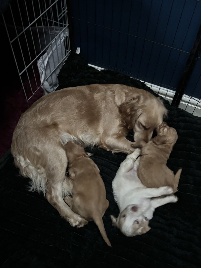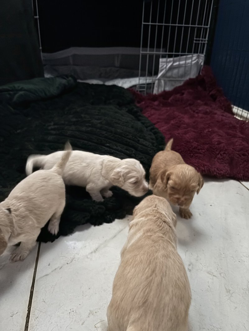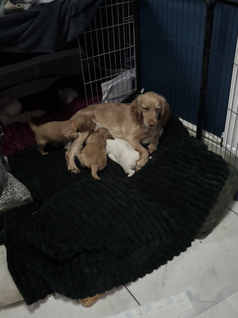 I am proud to show my beautiful golden cocker spaniel mixed dogs. They would make a perfect addition to your family, loving and playful.