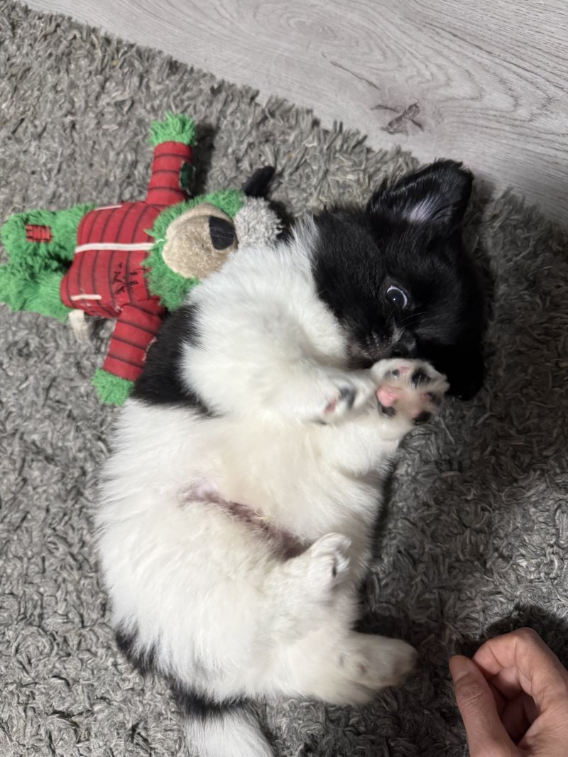 Black and white, fun-loving, and adores cuddles. Always the first in line for snuggles!