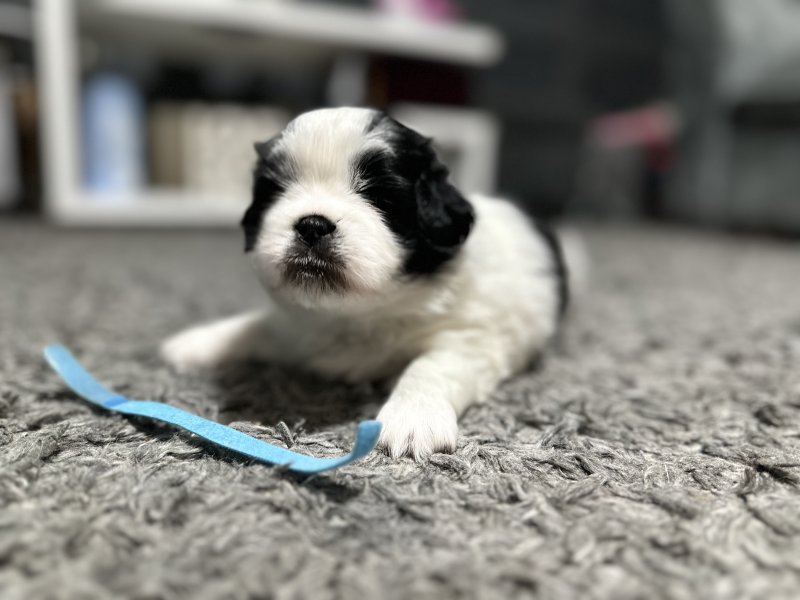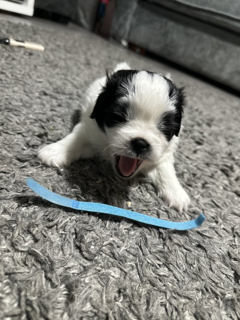 Mum is our beautiful black and white Shih Tzu, and Dad is our handsome white and ginger Shiranian (Shih Tzu x Pomeranian). Both are much-loved family pets with wonderful temperaments, and you can meet them when you come to view the puppies.