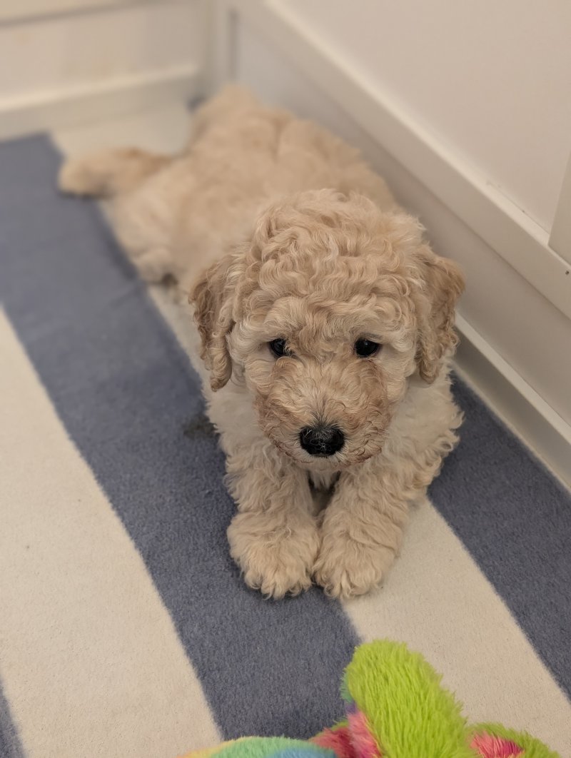 Mum is an Australian Labradoodle and dad is a red teacup poodle from a reputable breeder.
