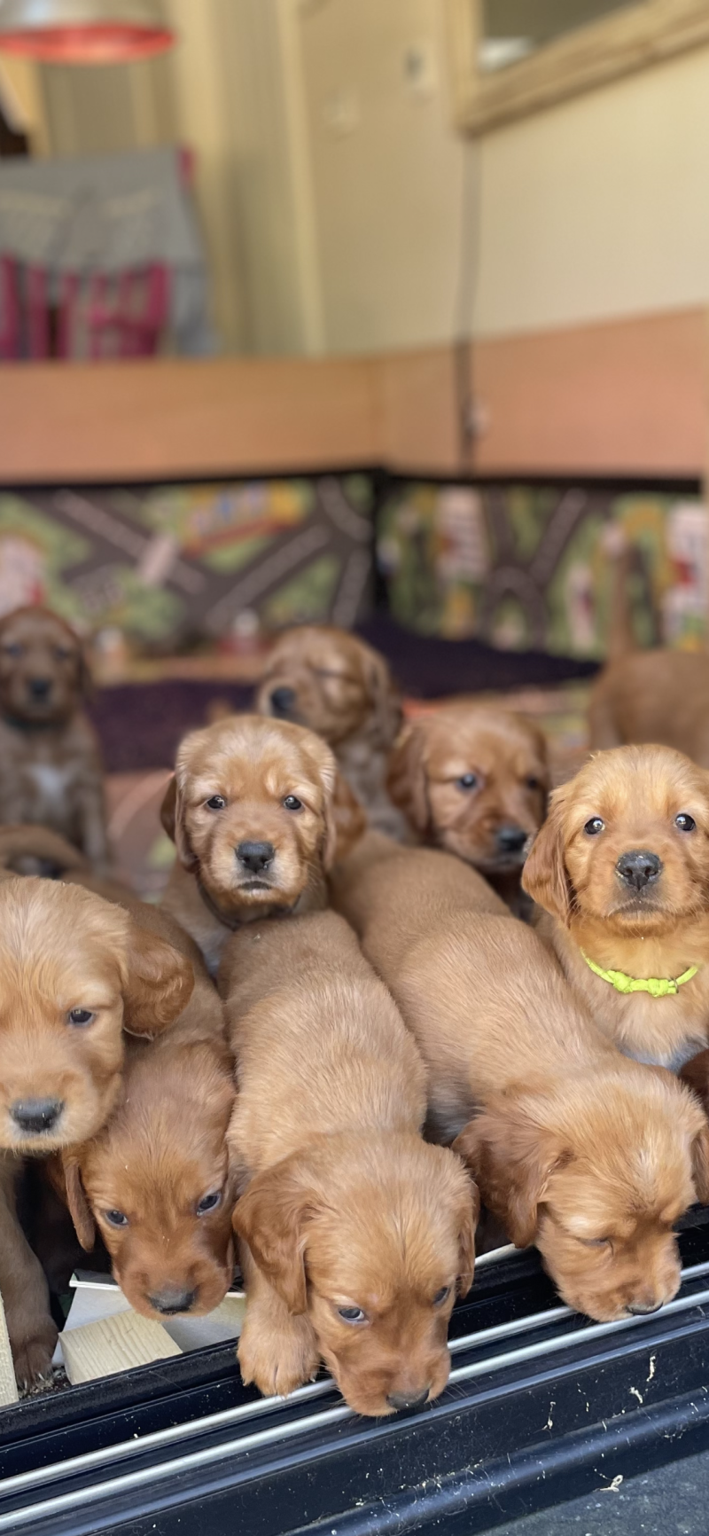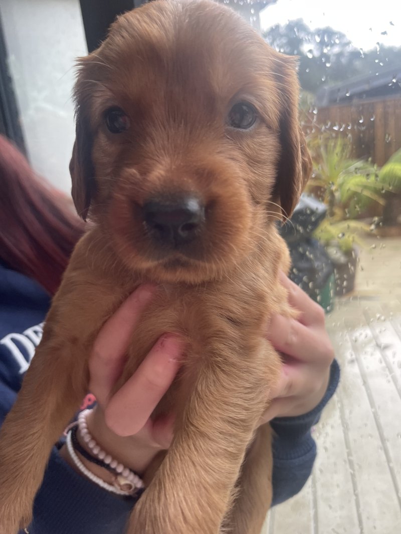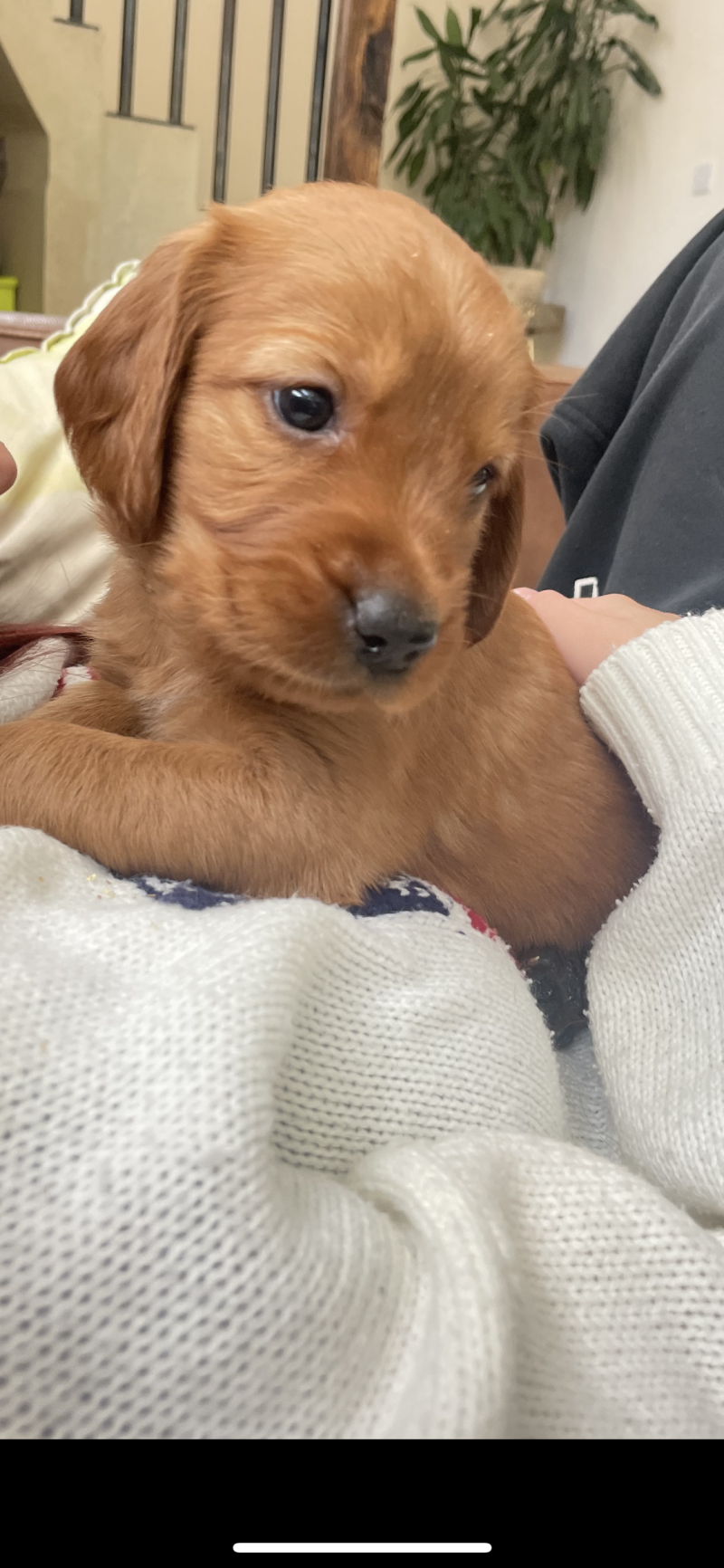 1 little girl left 🩷 Delilah our golden Irish has had 11 beautiful puppies. Both mum and dad our golden Irish , a mix of golden retriever and Irish setter . Very loving and loyal dogs, a perfect addition to a family . 2 beautiful little girls and 1 little boy left . This is Delilah’s second and last litter. Any questions please feel free to contact me . Thank you