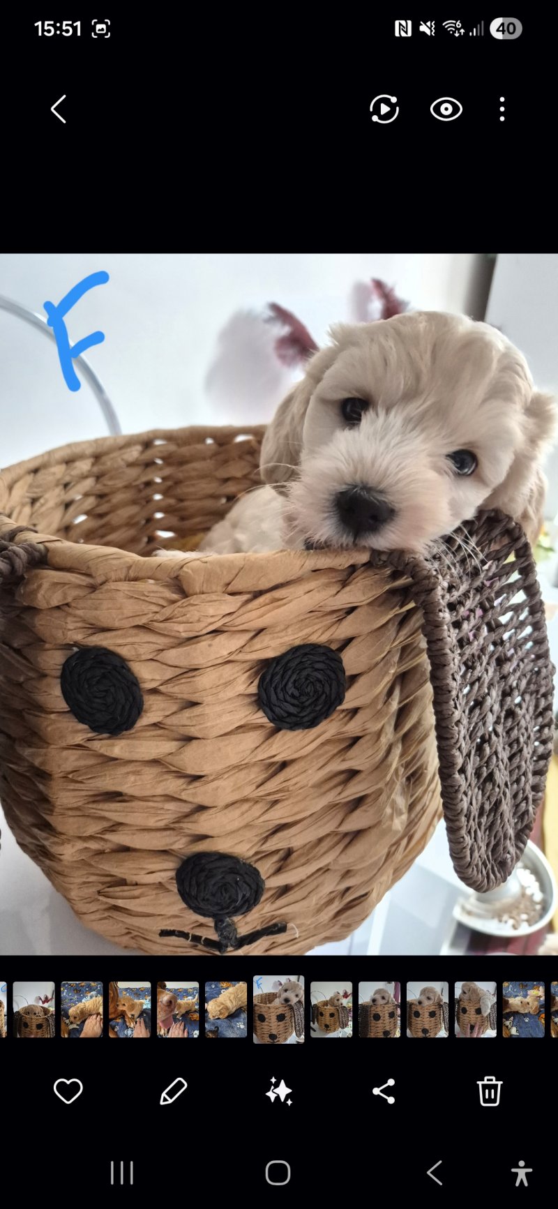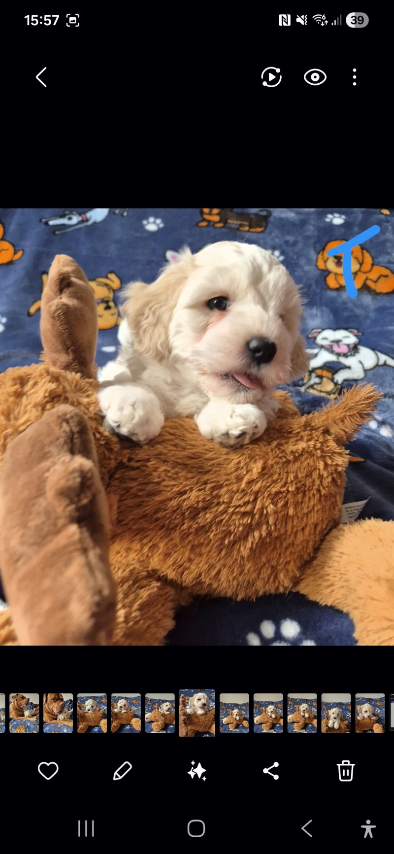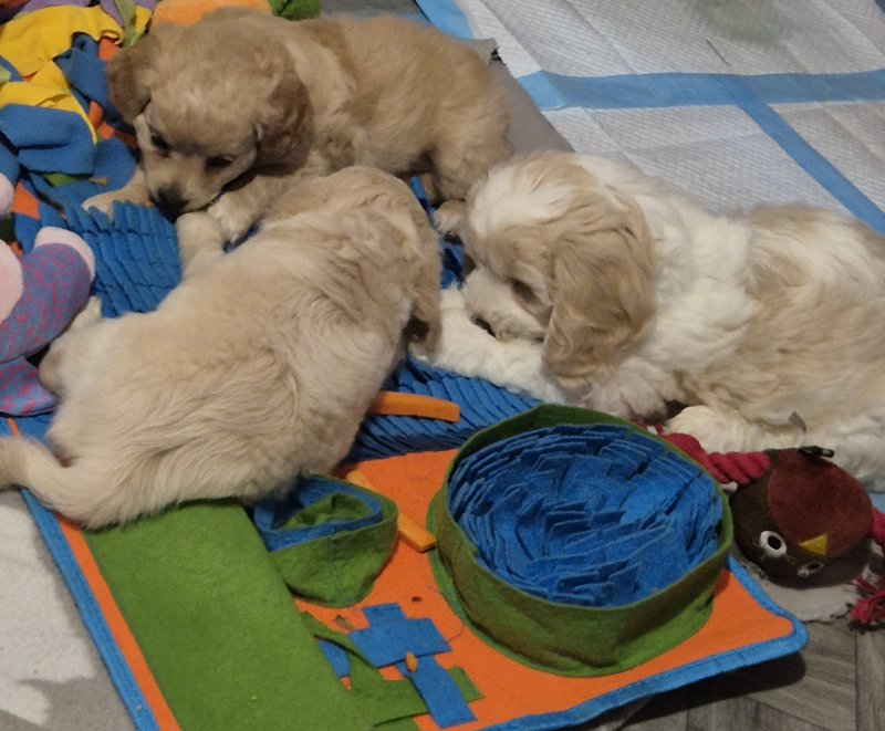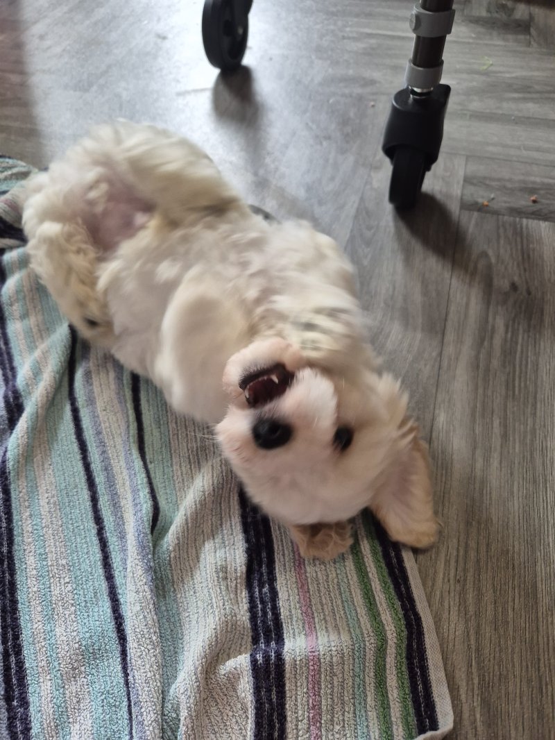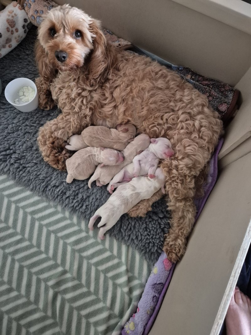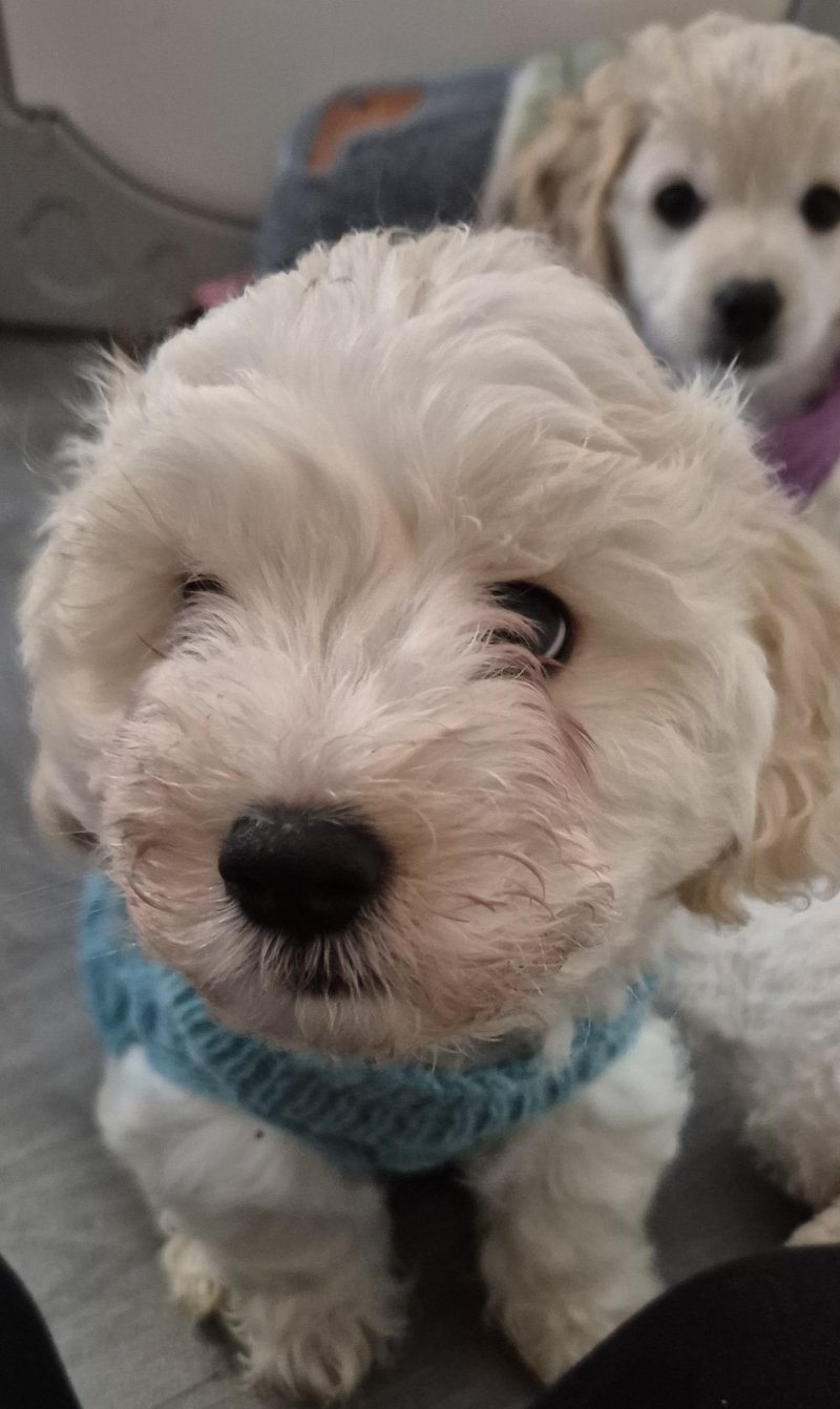 Daisy my Apricot Cockapoo had a litter with a Pure White Maltipoo. The puppies are a mix of both Mum and Dad, no 2 are the same. The puppies are hypoallergenic and therefore do not shed, however they will need regular grooming approx every 6-8 weeks.
